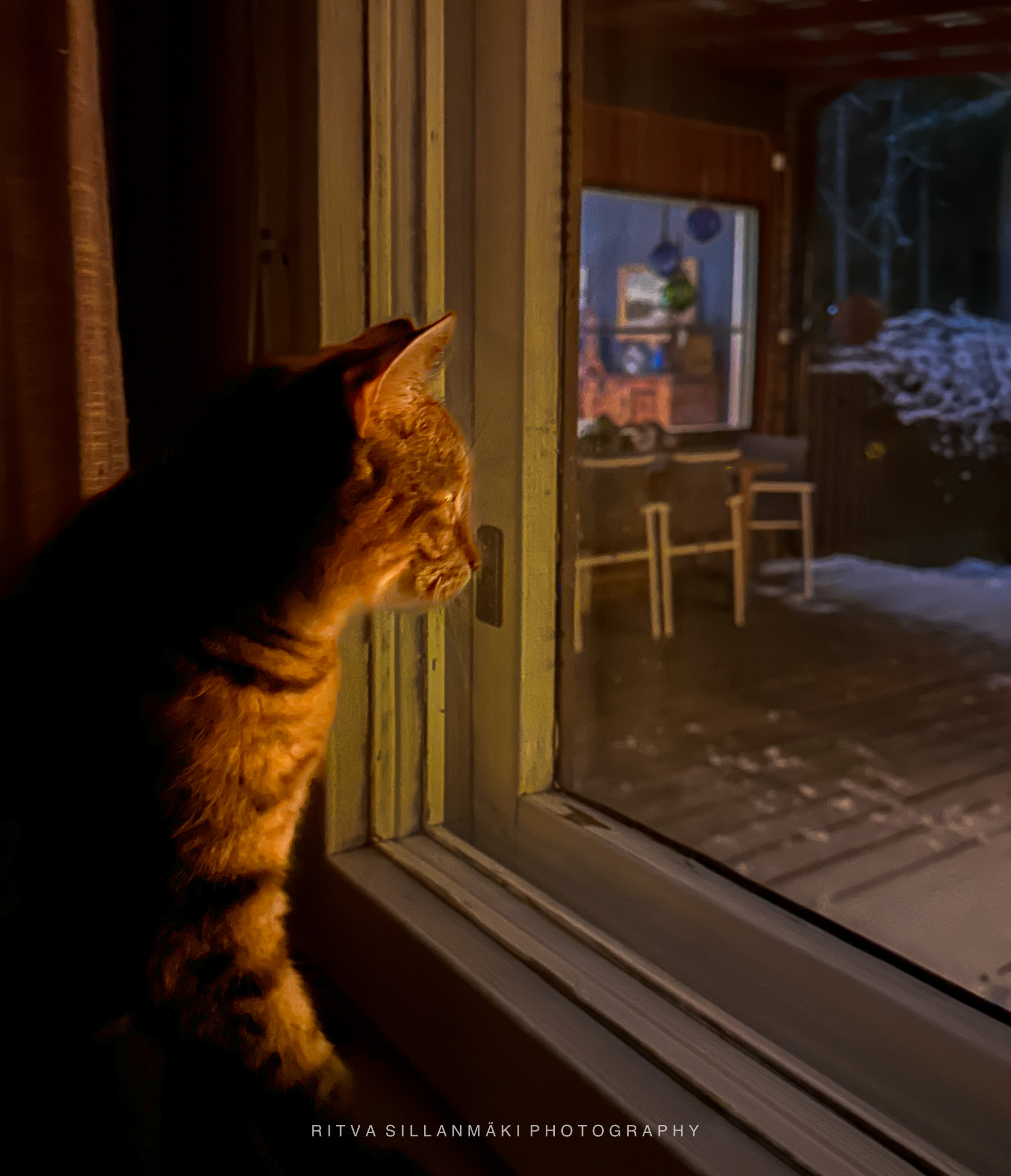Yesterday – finally we hanged some seasonal lights to our backyard to brighten the dark nights. Tinka enjoy the sight too 🙂 Two of them are from my bedroom and other through the window in my living room.