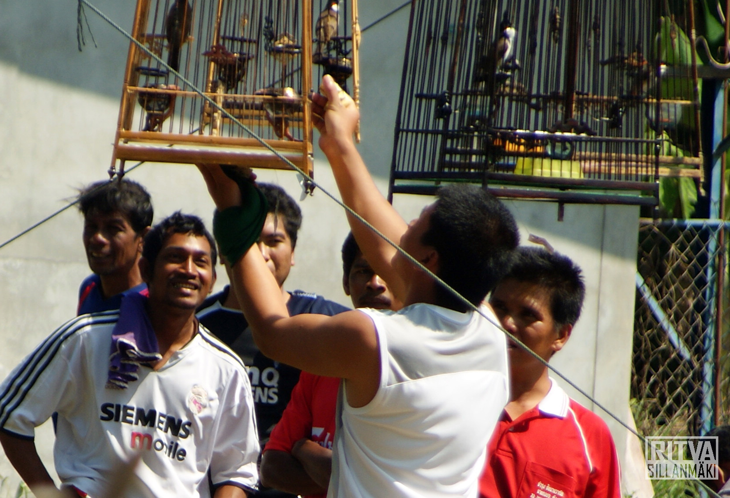 Live birds are purchased in the market and to be are released for cosmic merit. Thai people believe that emissions are released in live birds and fish. Releasing them you are considered for forgiveness. Or so we were told by the locals.