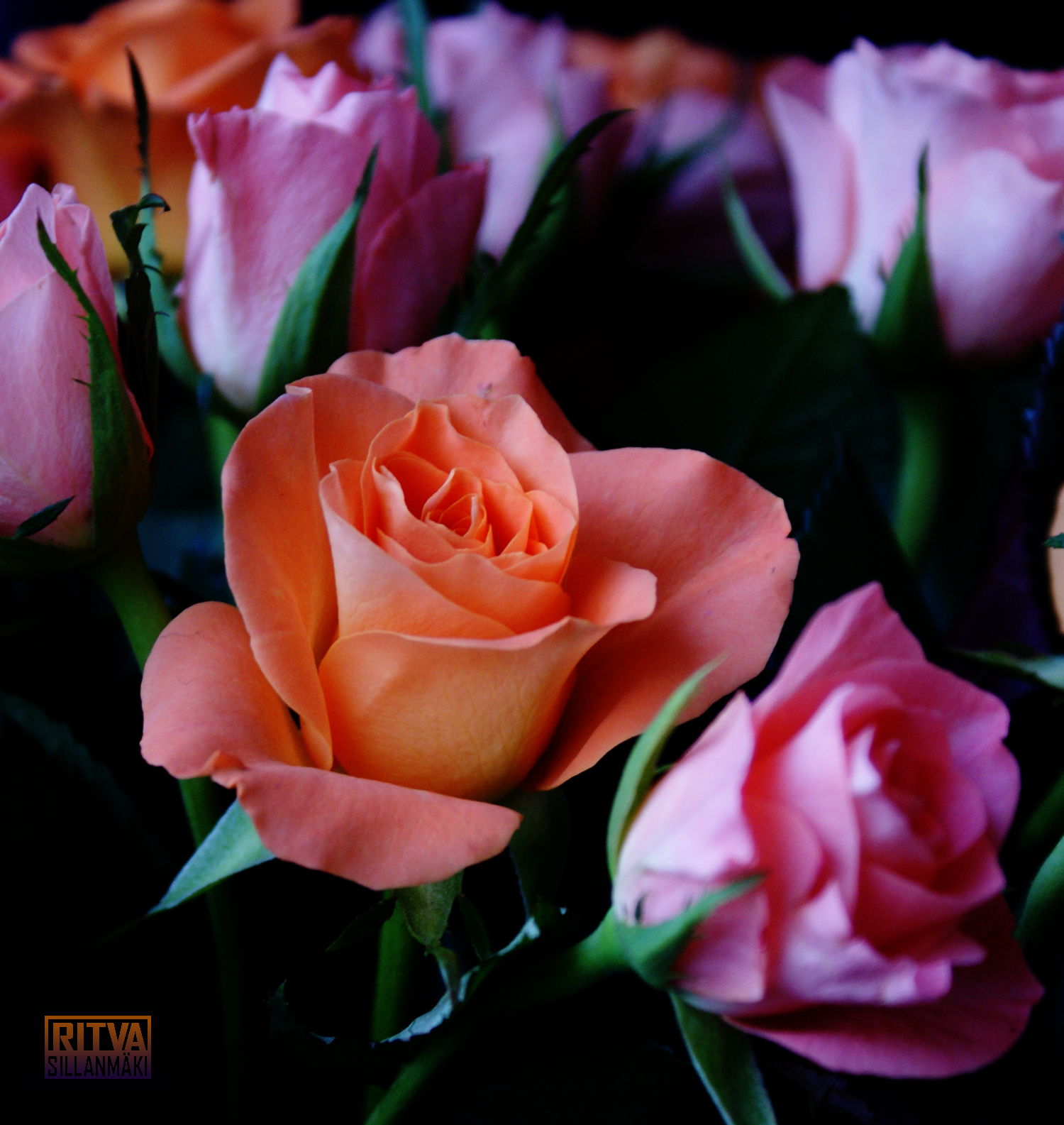 Yksi kauneimmista ruusuista, luulen että on “tropical”. Kaunis kukkatarjonta!