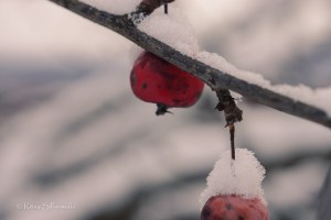Apples covered with snow