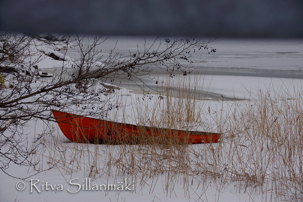Beautiful, I love how the red boat stands out against the bleak landscape and warms it up. Perfect 🙂
