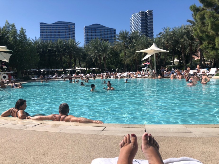 I am totally enjoying the weather here in Las Vegas. Pool day for me. The pool is not that big but we are safe. There is three lifeguards working the pool in 30 minute shifts.