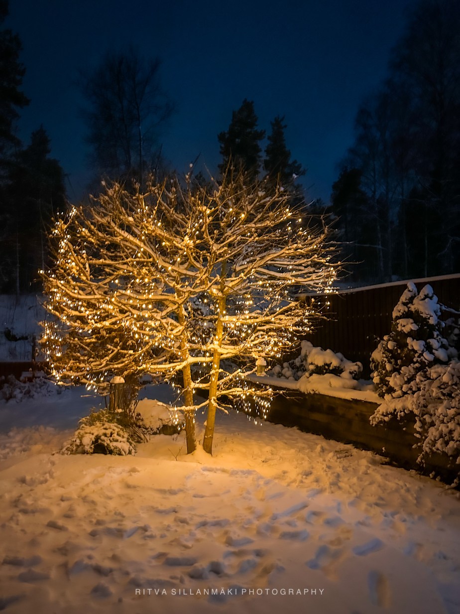 Yesterday – finally we hanged some seasonal lights to our backyard to brighten the dark nights. Tinka enjoy the sight too 🙂 Two of them are from my bedroom and other through the window in my living room.