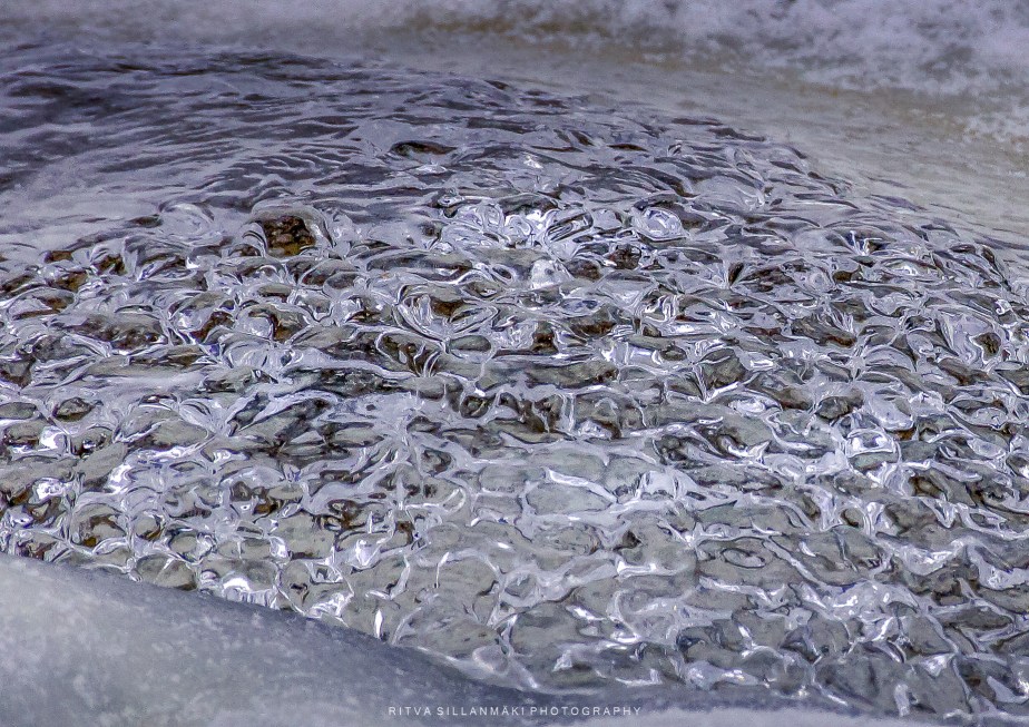 Close-up of rippling water, or is it ice? Nature gives us the opportunity to wonder, inviting us to contemplate the profound beauty and mystery of our surroundings. Whether it is the gentle undulation of water or the solid tranquility of ice, both evoke curiosity, encouraging us to pause and appreciate the intricate details of the world we often take for granted.