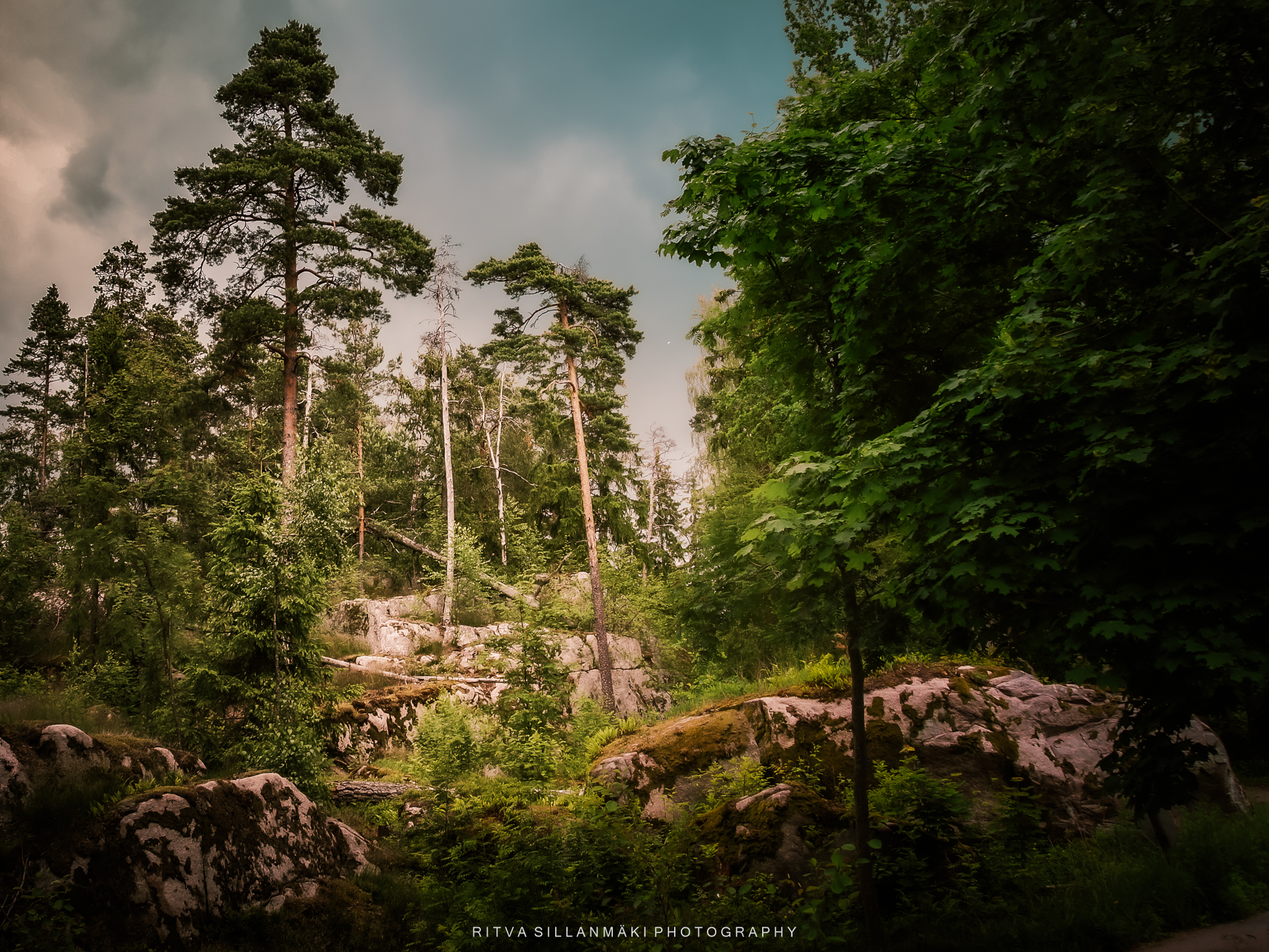 The original image was flat and boring, and I never got around to publishing it, even though the picture has many layers and good elements. Perhaps I didn’t initially realize to crop it enough; for some reason, I wanted the trunk of the pine tree in the image even though it didn’t really fit there. The sky had remained flat and nothing really stood out.