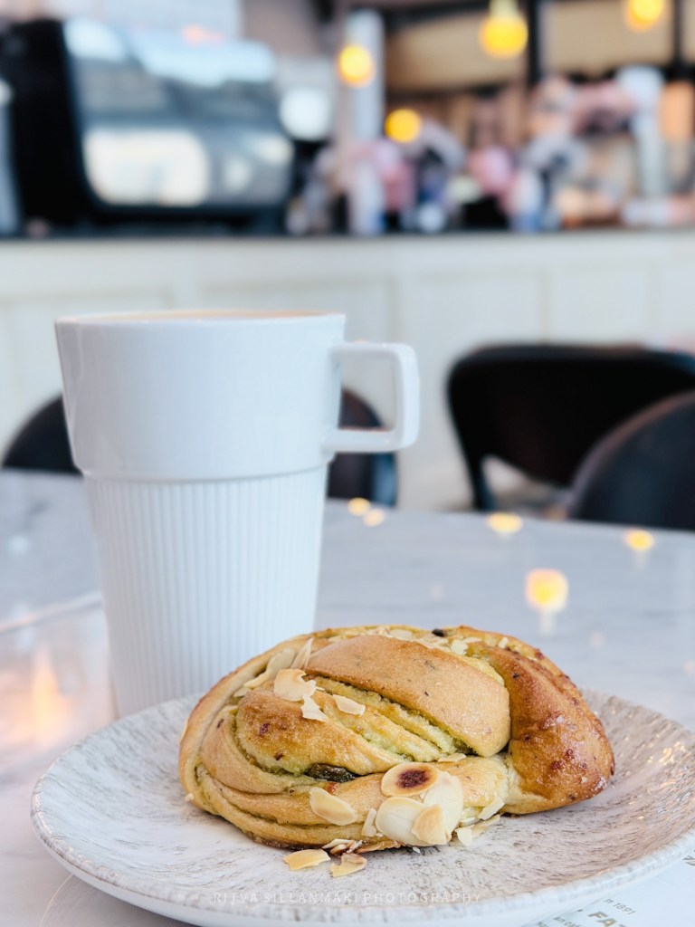 ‘Hazelnut nougat latte with a delicious Finnish pistachio cinnamon bun??’ I’d be so busy enjoying this to even think of taking pictures. Take some for me, Ritva. Oh, the thought of that coffee and bun…🥰