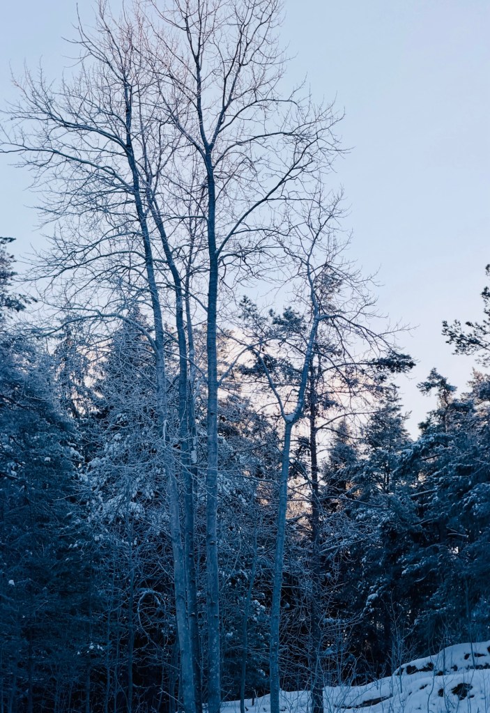 wordless Wednesday Captures from Finland A frosty tree surrounded by a blanket of snow in my backyard Frost-covered trees against a twilight sky in a winter landscape. Share this: Share on Facebook (Opens in new window) Facebook Email a link to a friend (Opens in new window) Email Share on Pinterest (Opens in new window) Pinterest Share on Bluesky (Opens in new window) Bluesky Like Loading...