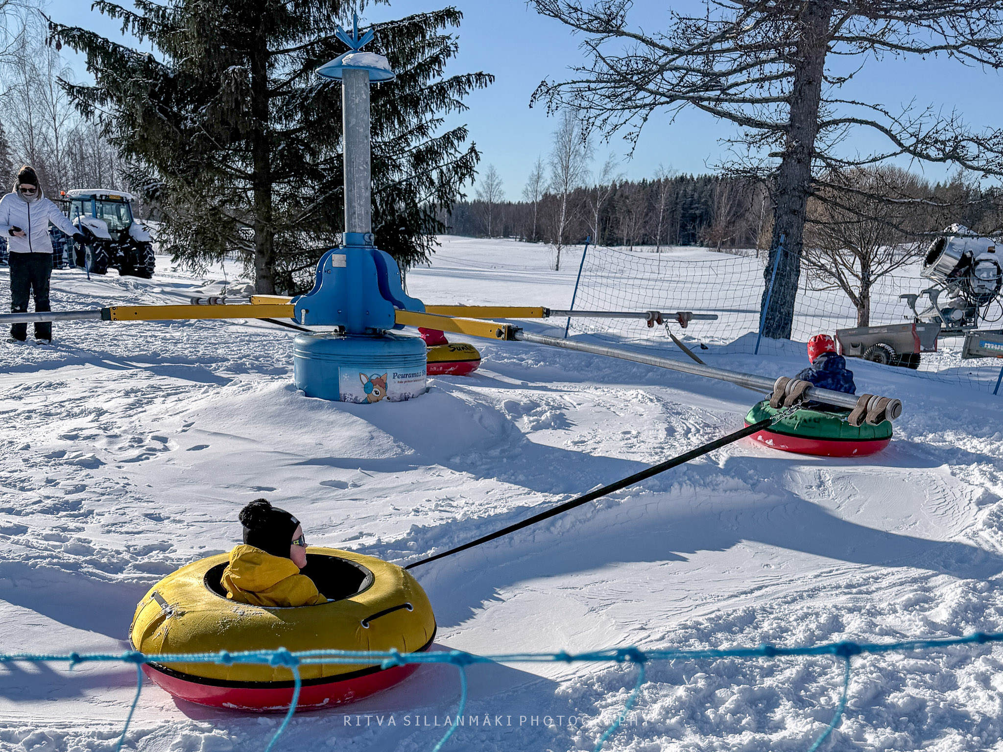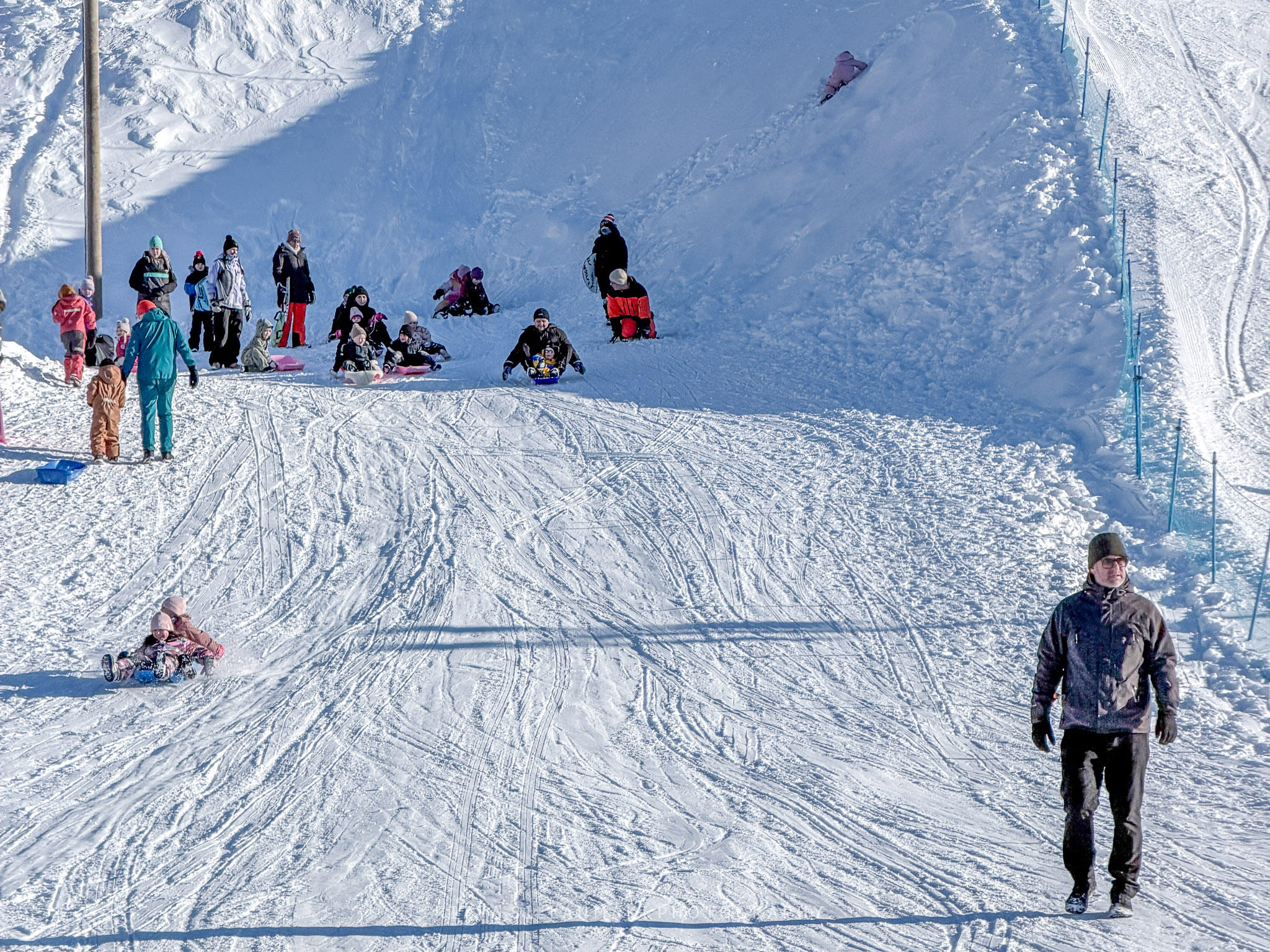 A sunny February day filled with winter delight was immortalized through my mobile phone. The vast blue skies contrasted spectacularly with the shimmering white snow. With a mild temperature of -4°C, it felt delightful to be outdoors, with children engaging in various winter activities. While the little ones might not recall this adventure, the adults surely will.