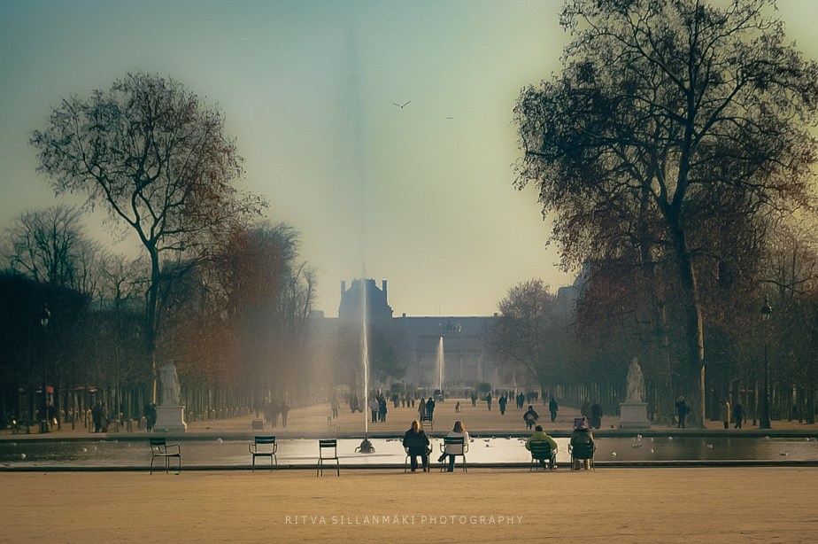 The atmosphere is pleasant, with locals, joggers, and tourists from the Louvre mingling together. Numerous benches are said to line the fountains, providing a place to relax, and one can often discover a serene corner within this expansive 26-hectare garden, away from the noise of the city. However, since we visited in winter, there weren’t many chairs available.