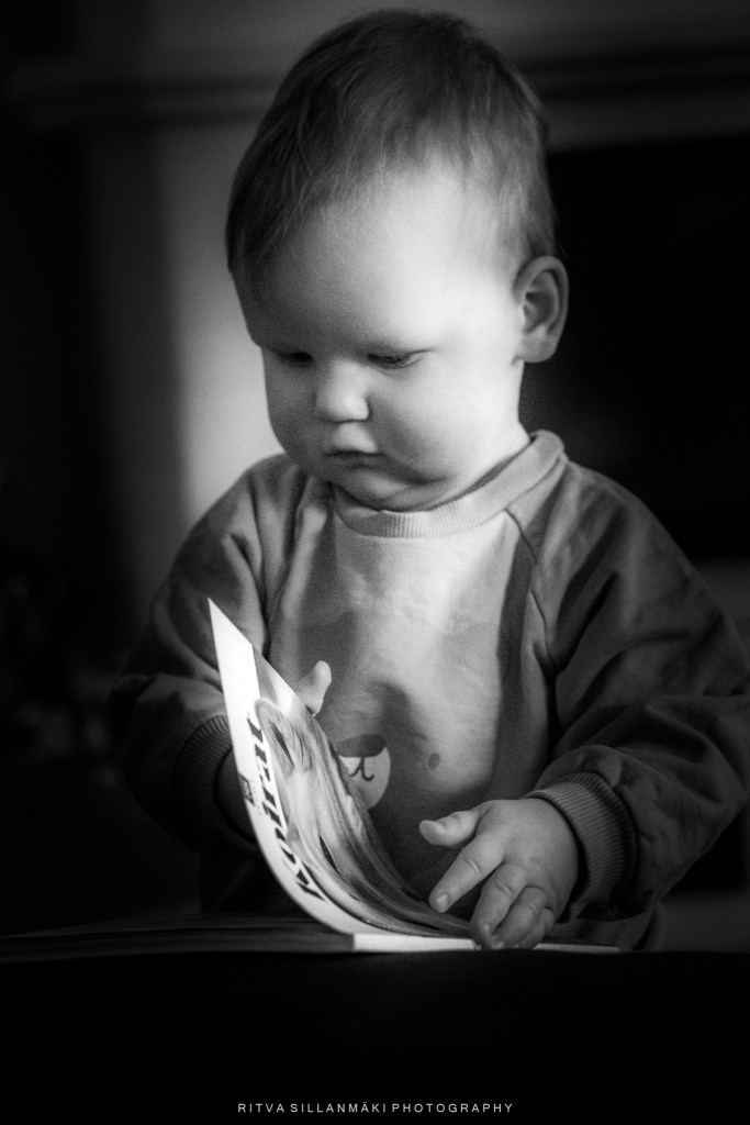A toddler is depicted deeply engaged in a book, highlighting their natural curiosity and desire for exploration. This moment illustrates the importance of early literacy and the joy of learning through reading. The post serves as a celebration of childhood discovery.
