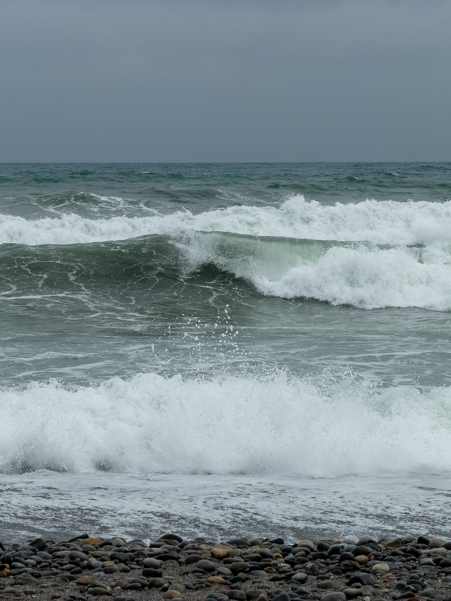 What I am sharing in these images is my fascination with the waves and the rhythm they create as they roll and crash against the shore. The smooth pebbles, worn down by years of continuous motion, invite you to touch them, and you can be calmed down by rubbing your fingers across the surface of each one, feeling their coolness and texture. I am totally aware of the abundance of images I have taken, but if you open the galleries, you can quickly scroll through them and perhaps pause on a few, giving yourself the chance to truly appreciate my admiration for the power of water.