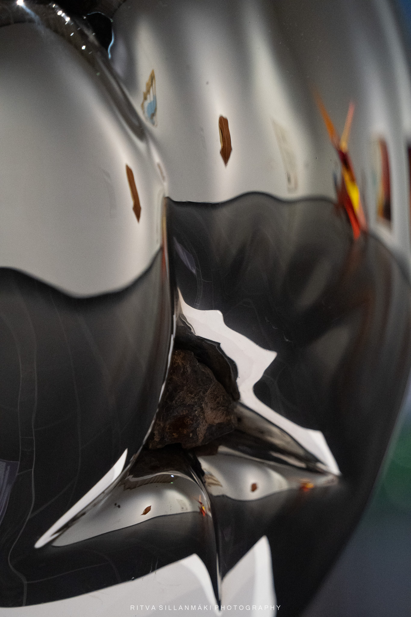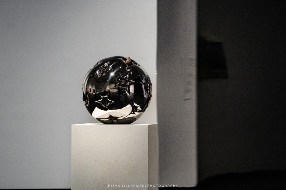 Each angle revealed something new, and I found myself striving to capture that one inspiring shot that would encapsulate the essence of the piece. One of the photographs I took appears to show a crow peeking out from the depths of the artwork, its silhouette forming a mysterious figure that invites curiosity. Another image conveys a sense of wonder, resembling a stone or a meteor hurtling forth from a brilliant star, as if it were a fragment of the universe capturing a fleeting moment in time.