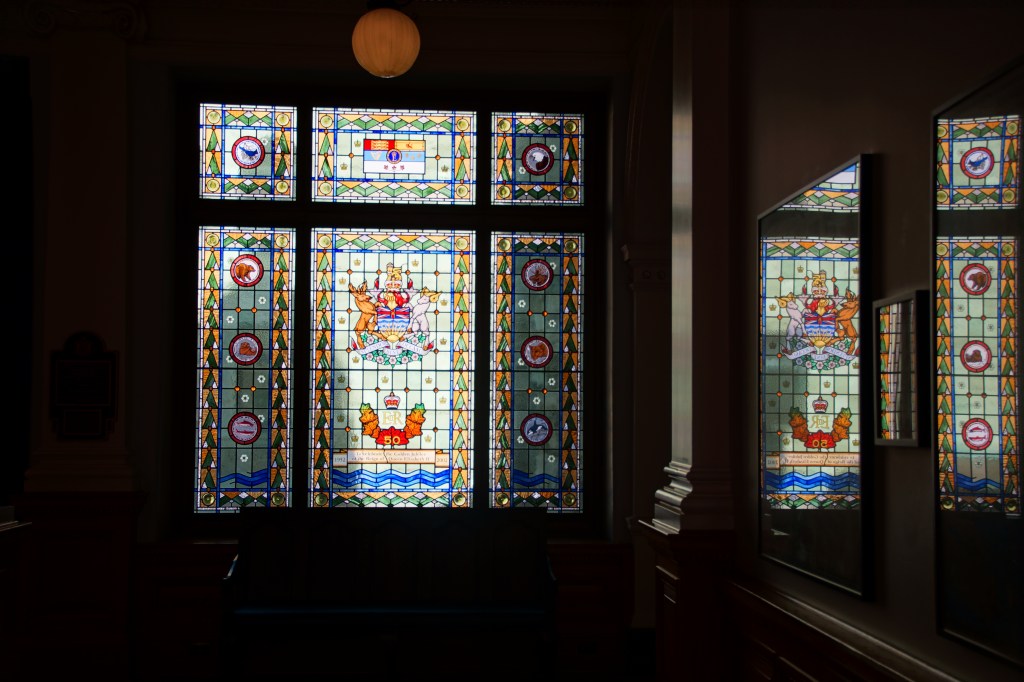 Stained glass door in the Parliament Building, all of their stained glass was shipped from England to Victoria. So, Even though this was a post about the doors, the windows are so much more beautiful.