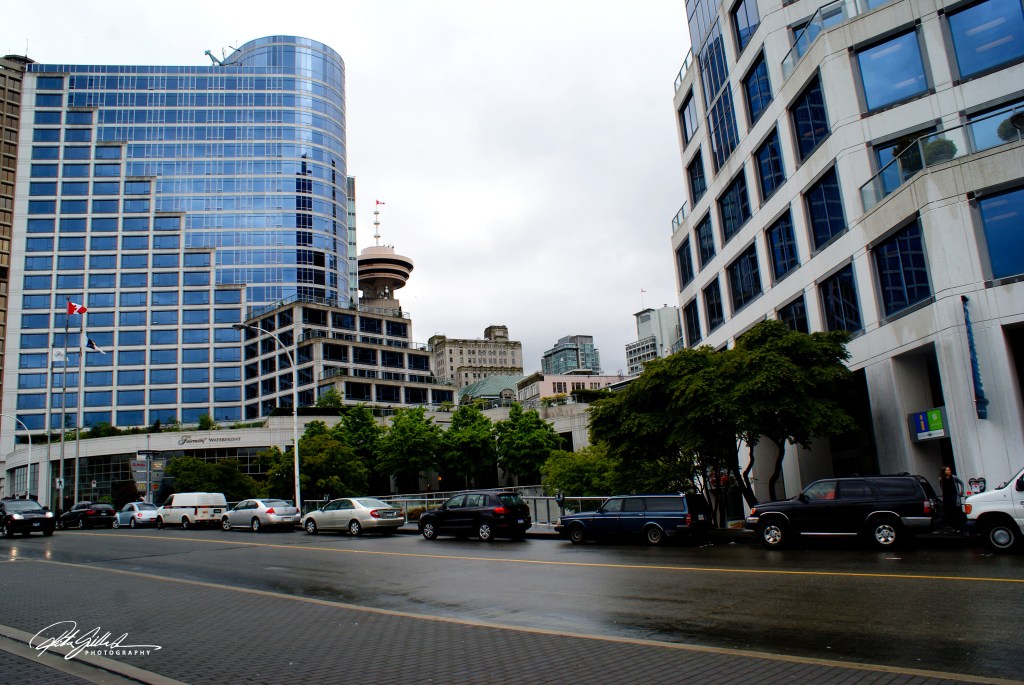 Looking back at the colorful windows from downtown Vancouver.