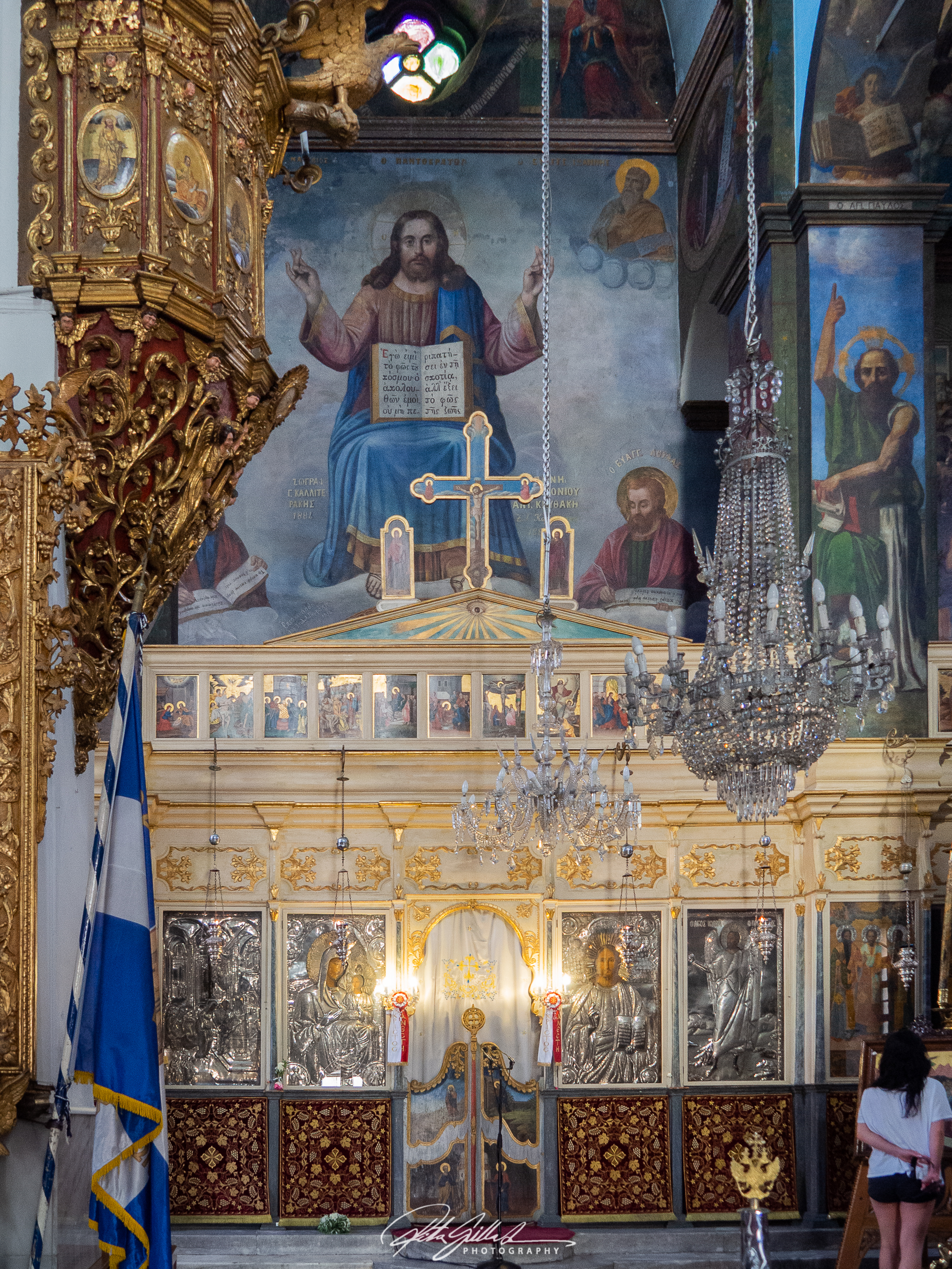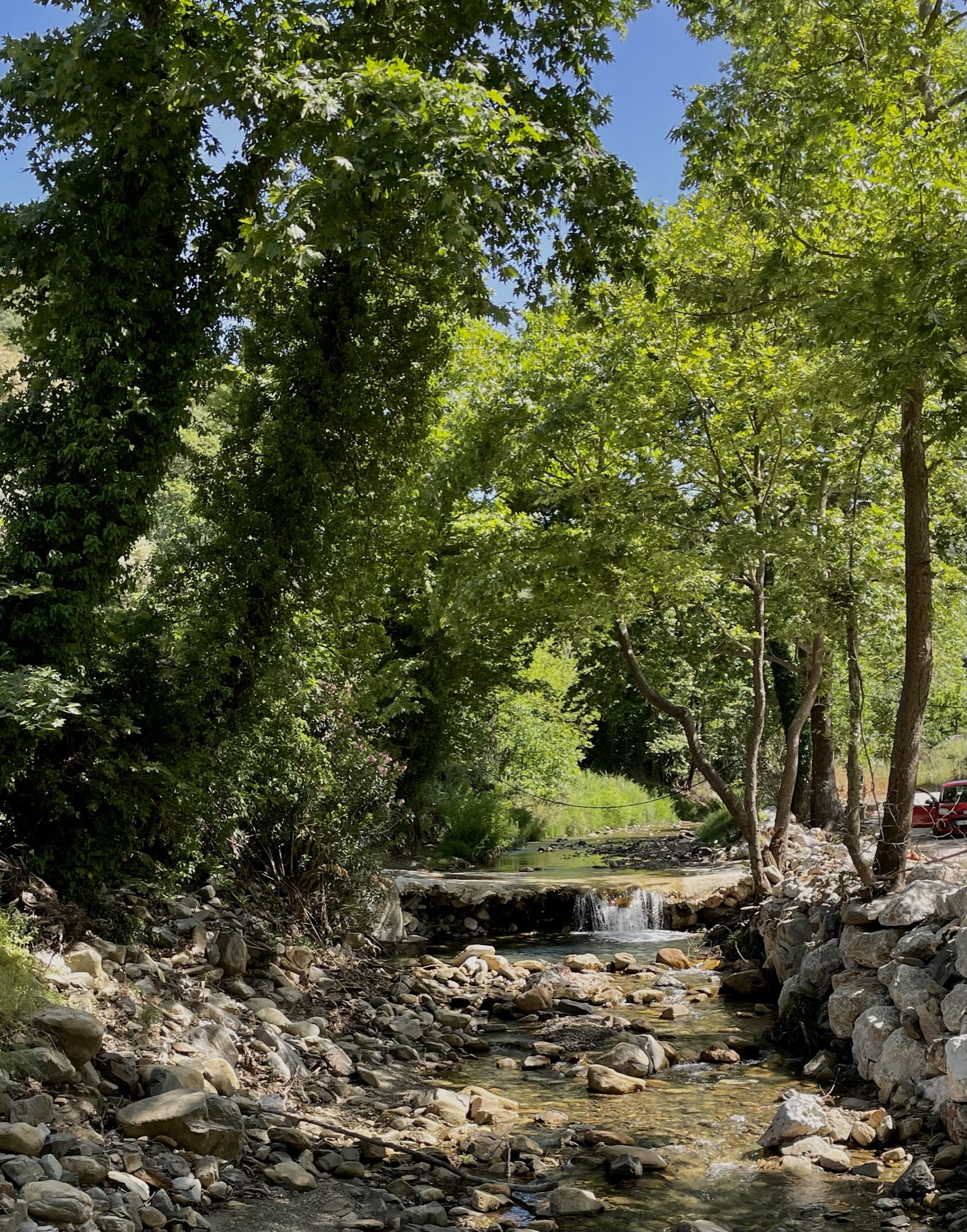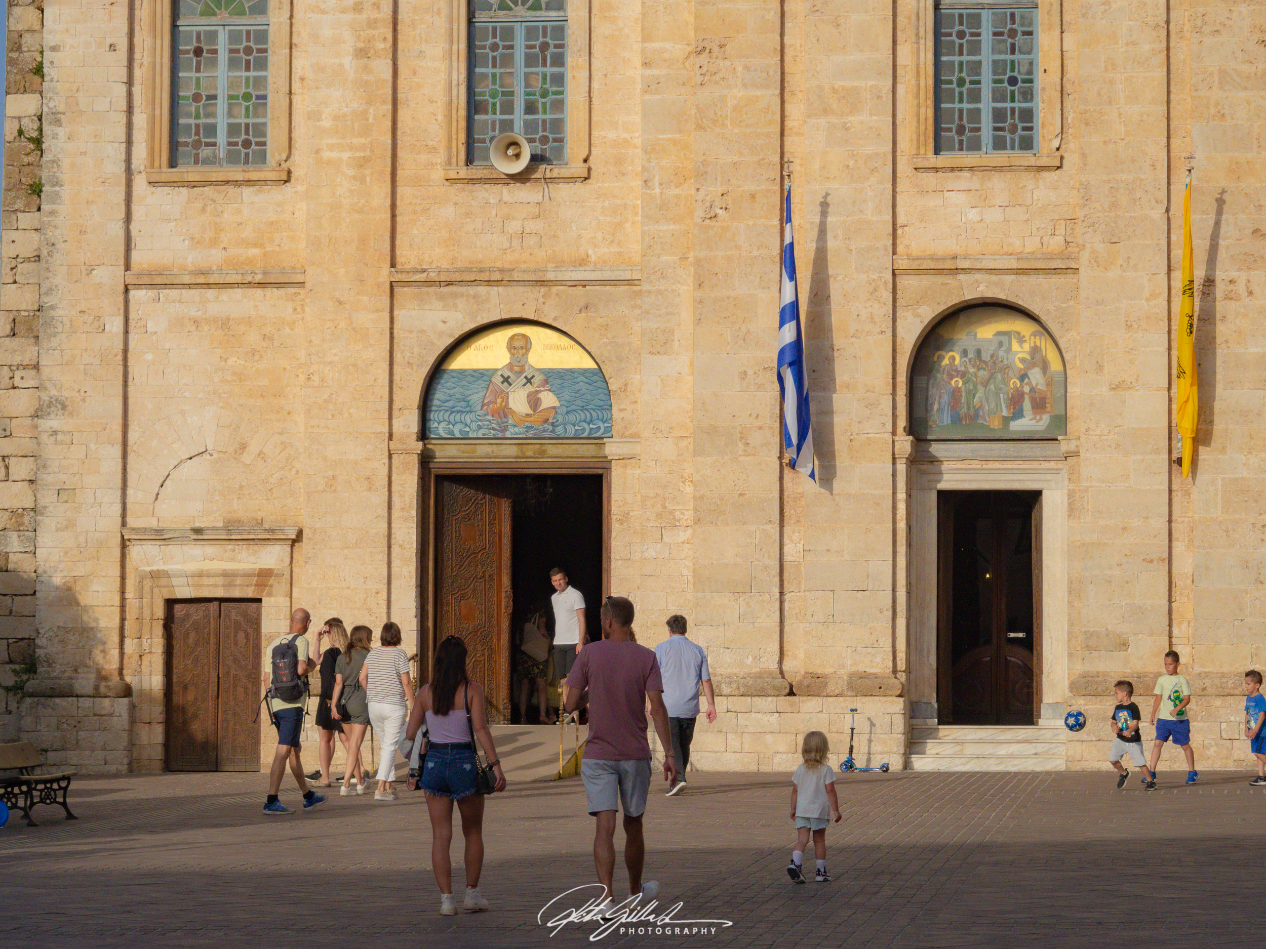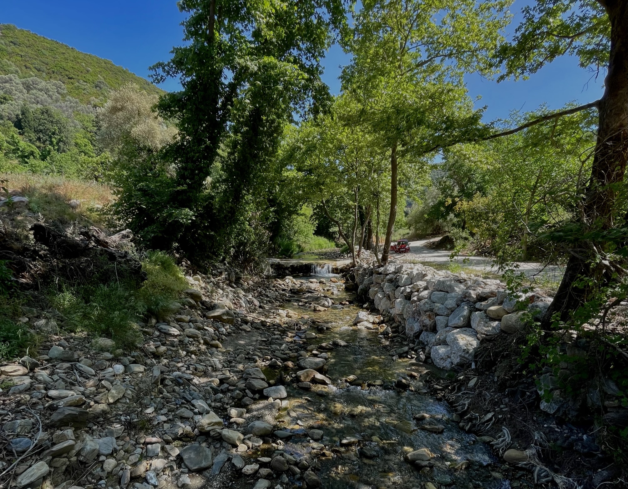 The place itself is hardly worth a mention but the beach, the Bay of Stavros, is a bathing paradise for swimming. The fine sand slopes gently to the sea and the bay is protected here from strong waves by a small promontory. There is not a lot of shade… unless you hire an umbrella and beach chair. Lying on the beach there is always something different to focus on when viewing the mountains opposite.
