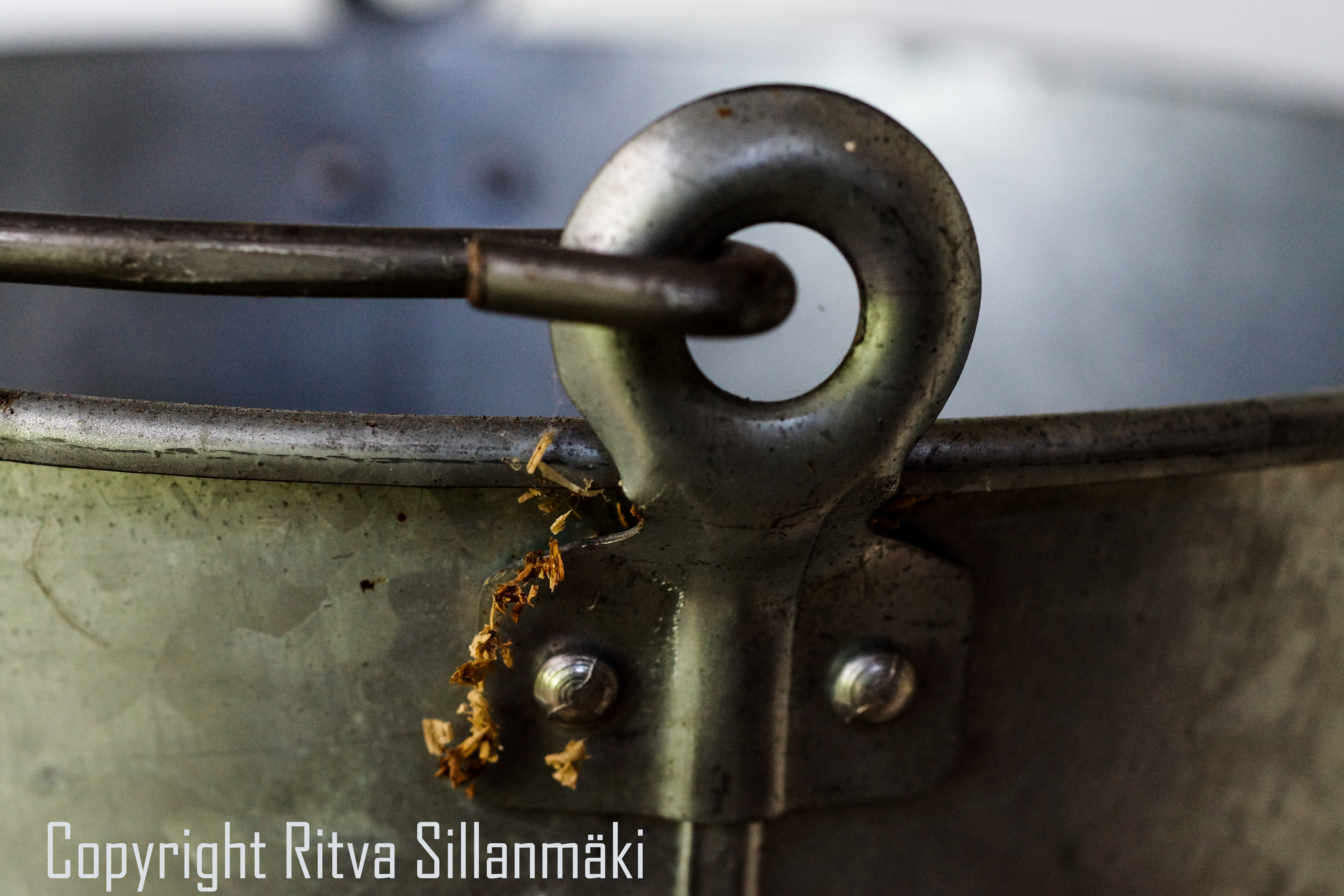 Oddly enough, I was the one warming the sauna… usually not done by me. I still had my camera with me so I took photo of our water buckets. I kiked how the light made them stand out. ODD shot.