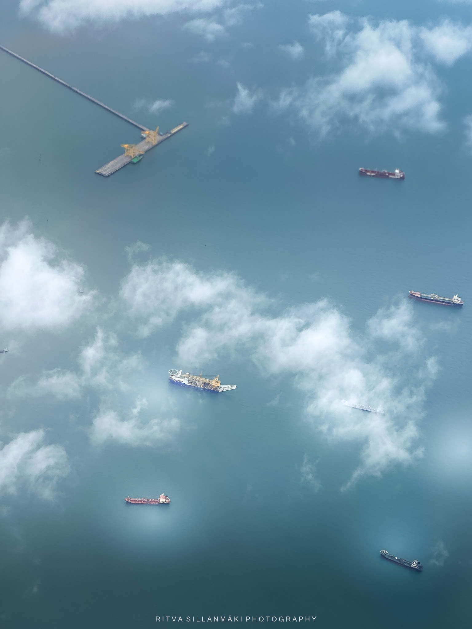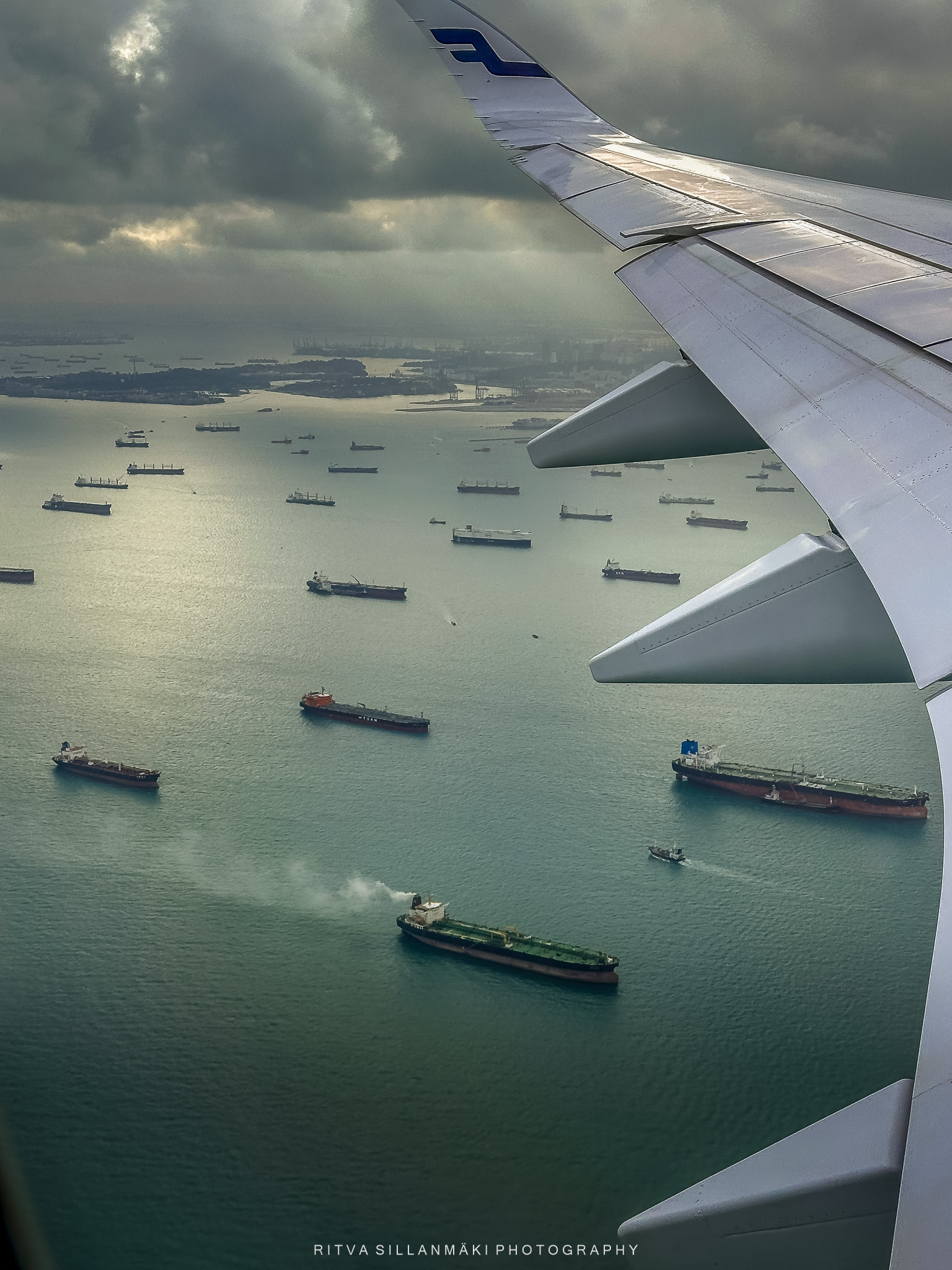 These I took with my iPhone as we approached our first destination Singapore from above. I am amazed how good photos the phones take these days. We we also rather amazed how many container ships there were.