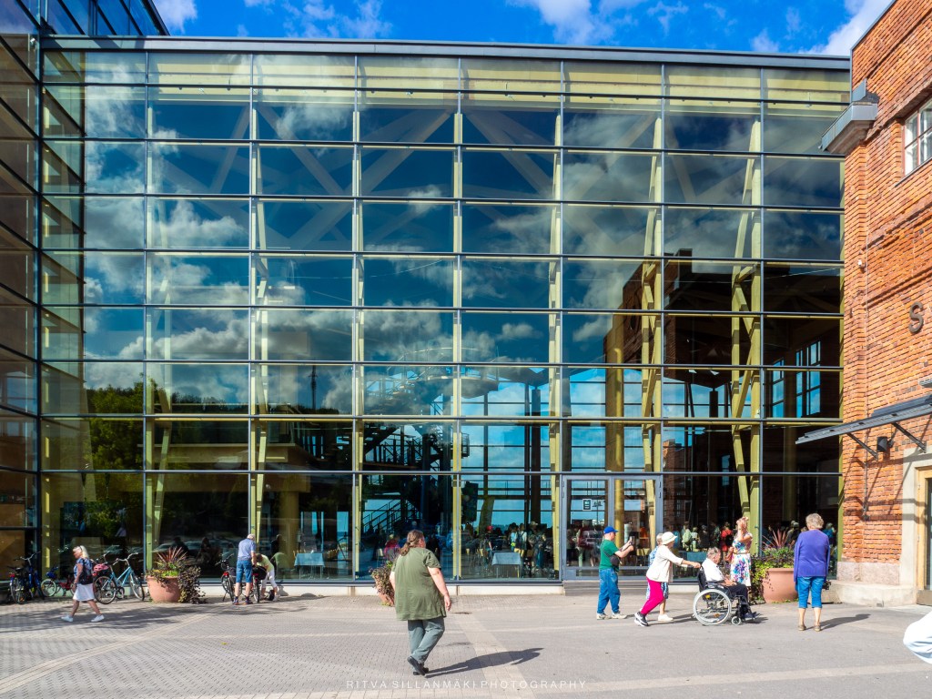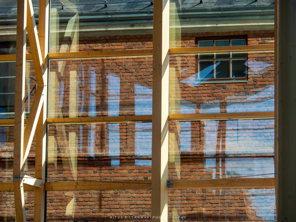 I am starting with doors leading to boathouses and a view through an archway of a partially collapsed brick structure reveal a jagged brick wall in Finland.