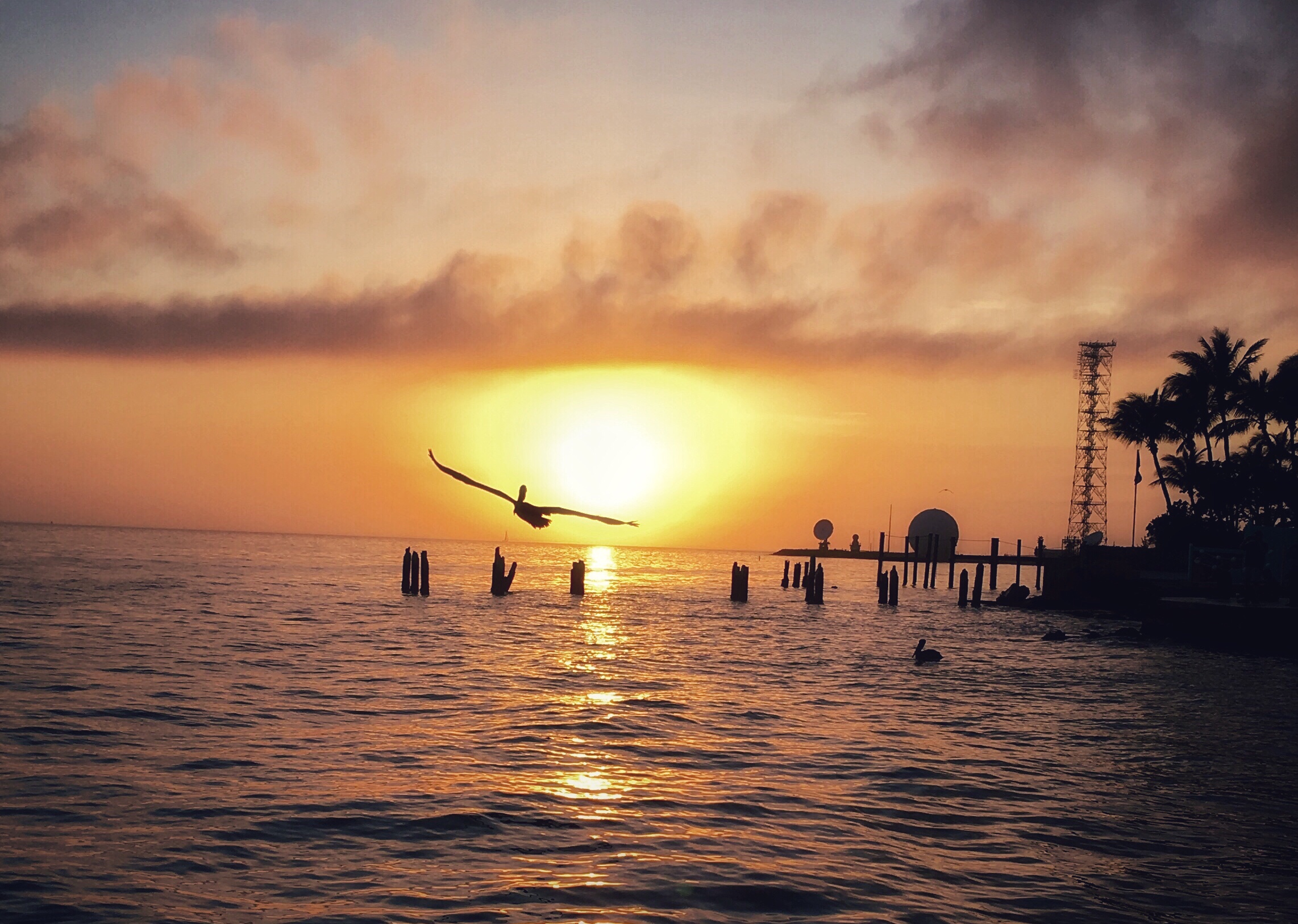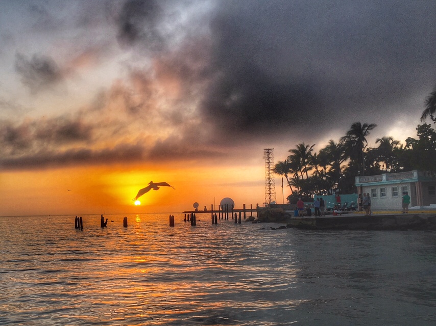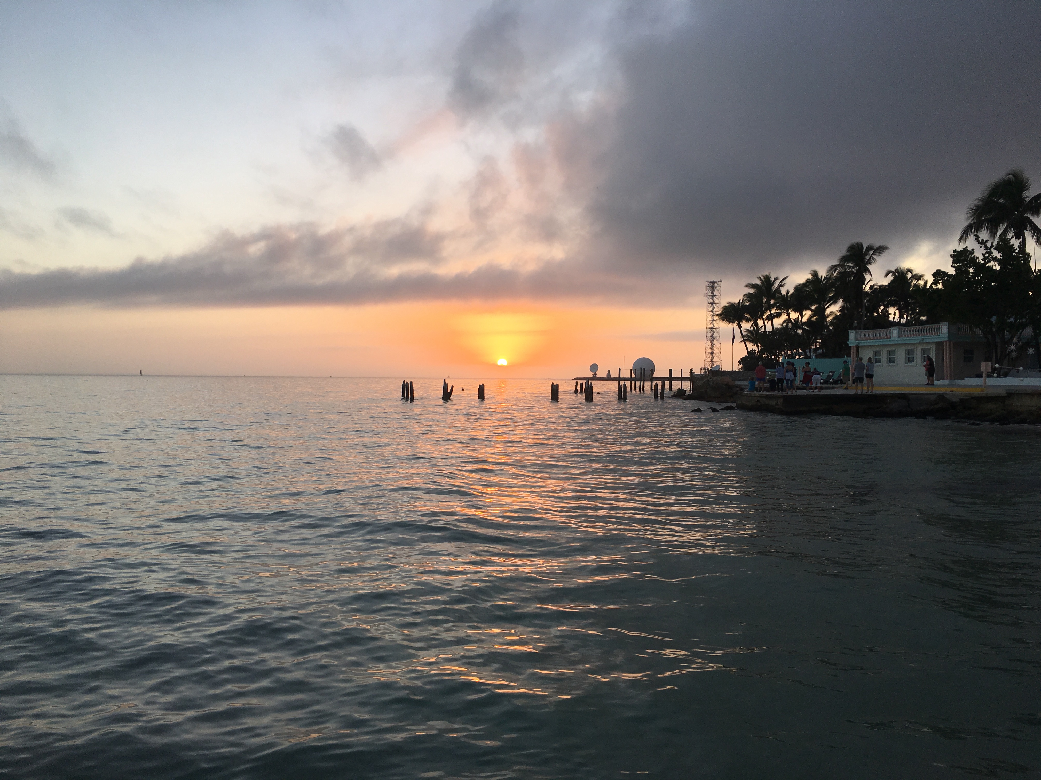 Sunset witnessed from behind the cruise ships blogging most of it view at Key West in Florida.