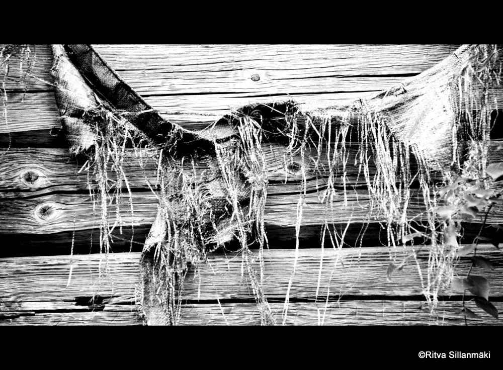 A door, stubbornly clinging to its frame, beckons me closer. Its dark brown hue suggests years of exposure to the elements. Now, it hangs askew, its wood softened by rain and sun.