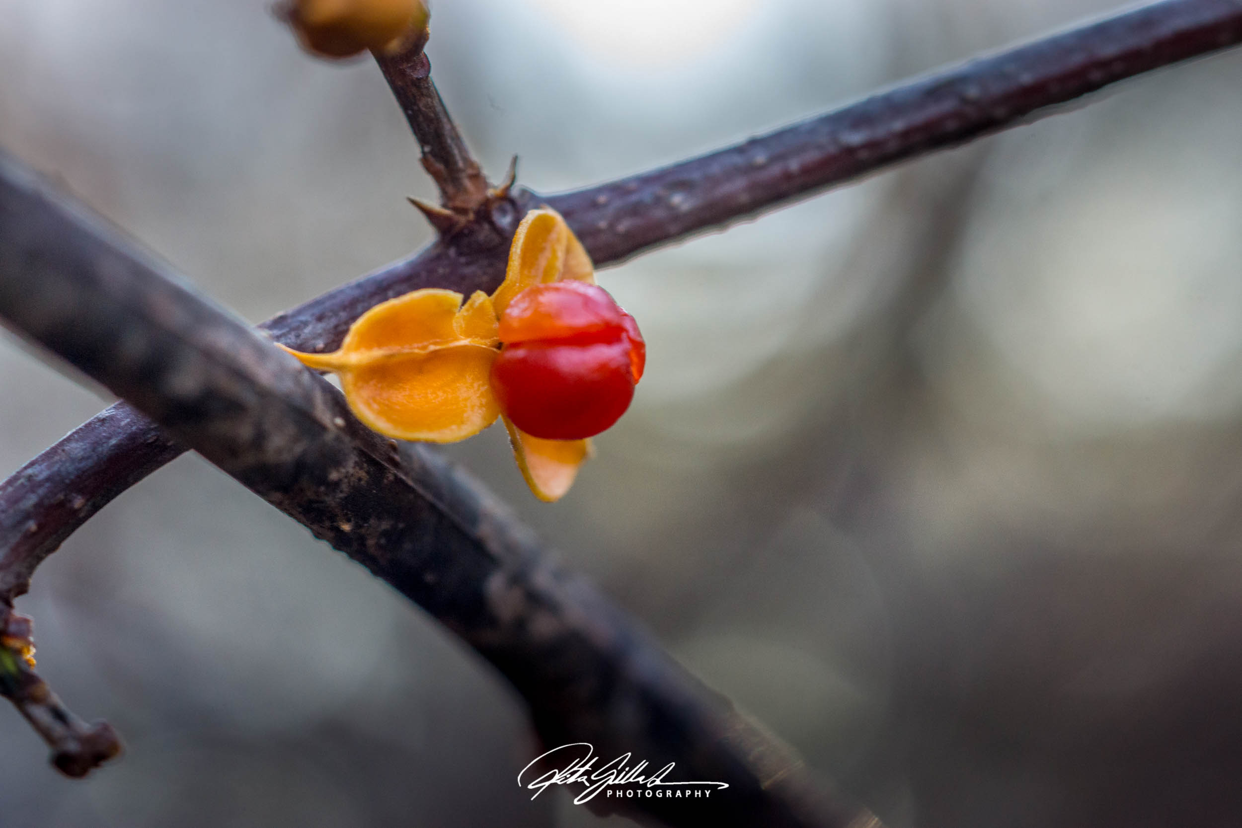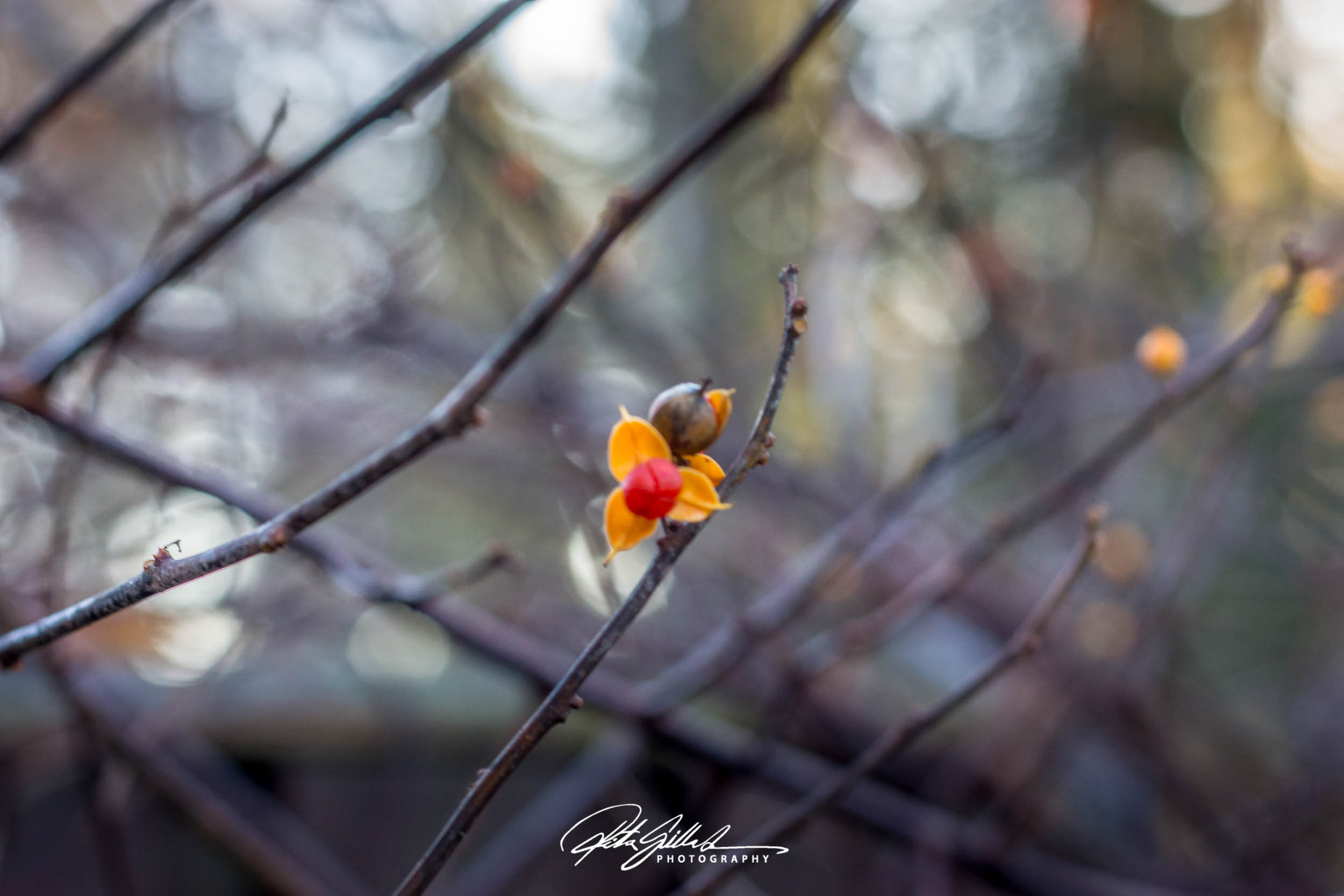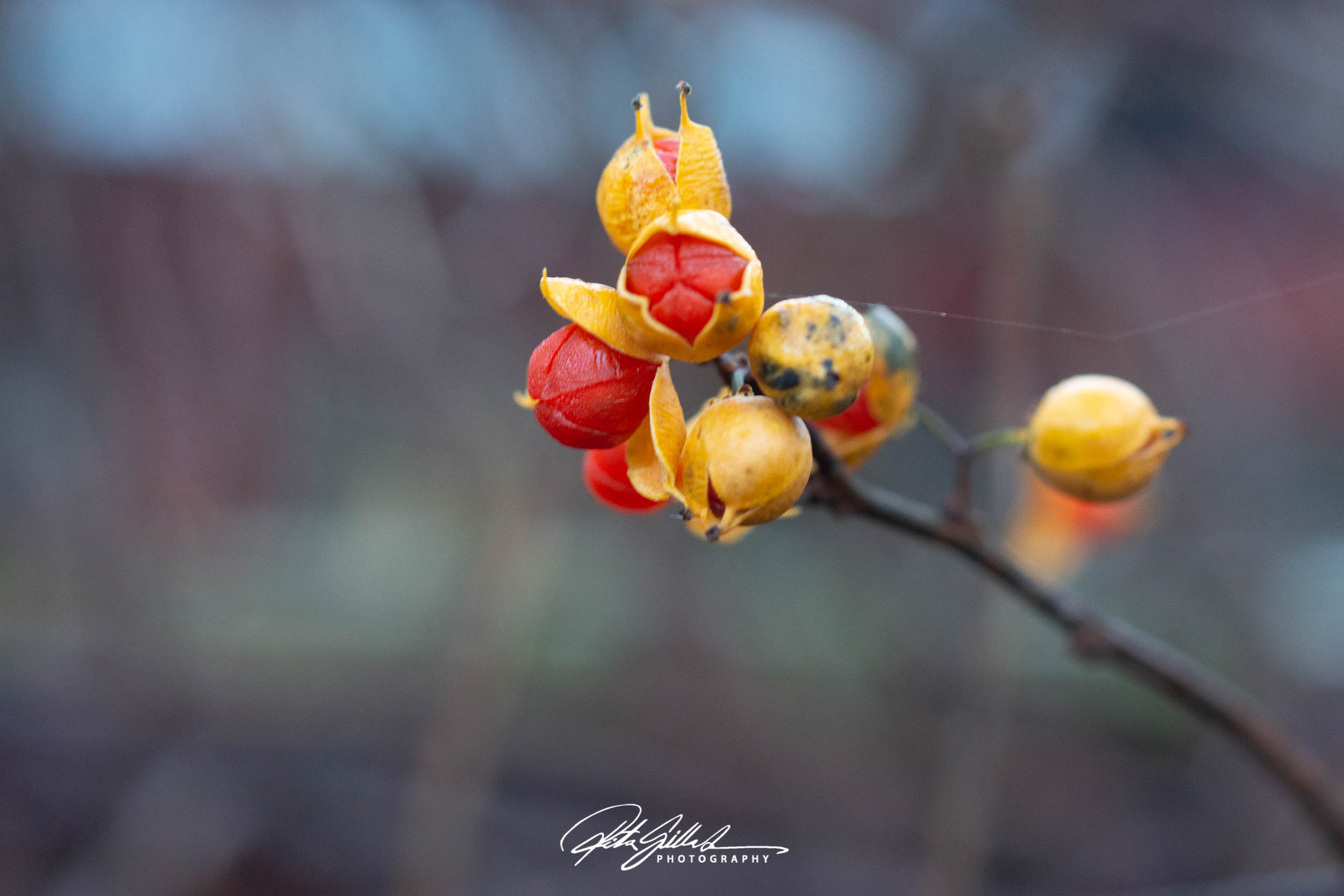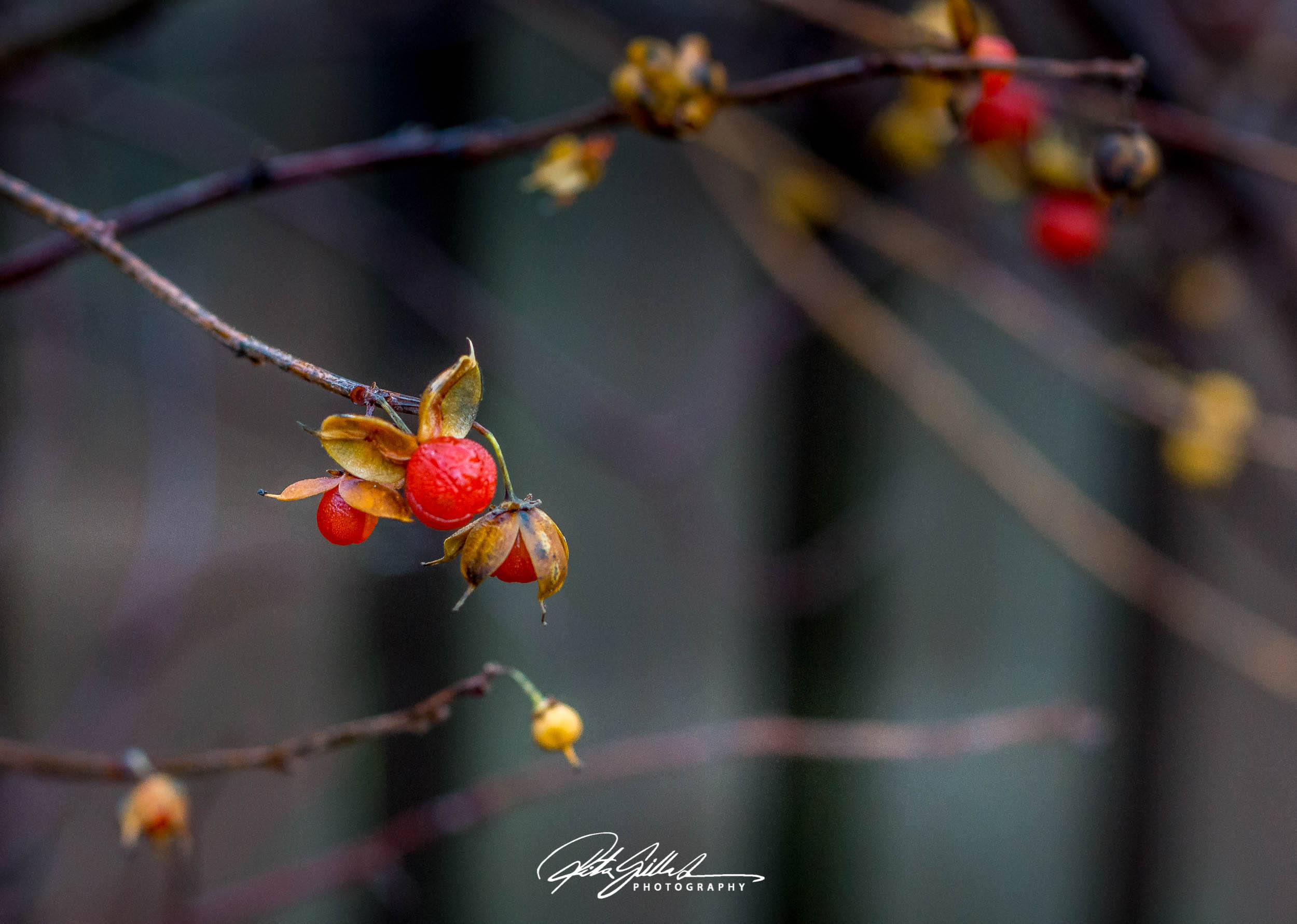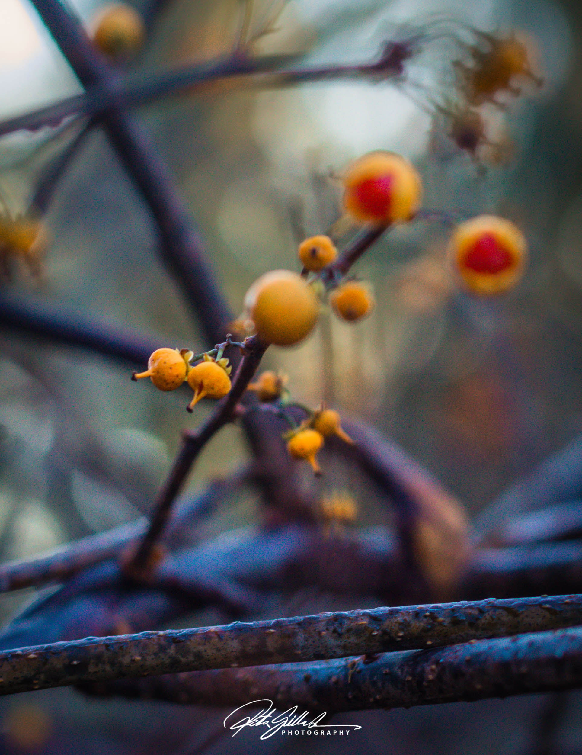 My garden still produced some colors, this one I turned into B&W for the reason of composition. The cross and balanced berries. I have to admit it is so much better in color, but that was what I thought I’d photograph today