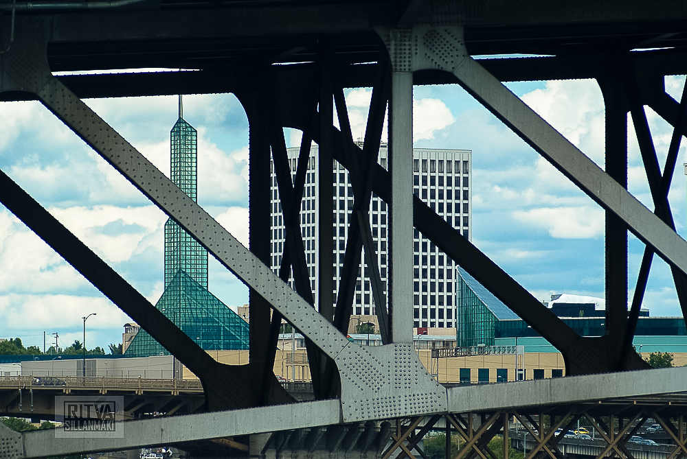 I am starting with doors leading to boathouses and a view through an archway of a partially collapsed brick structure reveal a jagged brick wall in Finland.