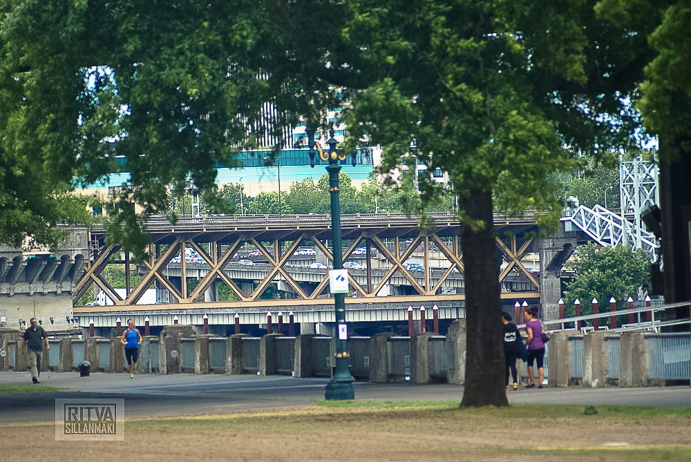 A view framed through a heart-shaped opening captures the essence of urban life showcasing the bustling street life, a man selling ice cream and a riverboat in India.