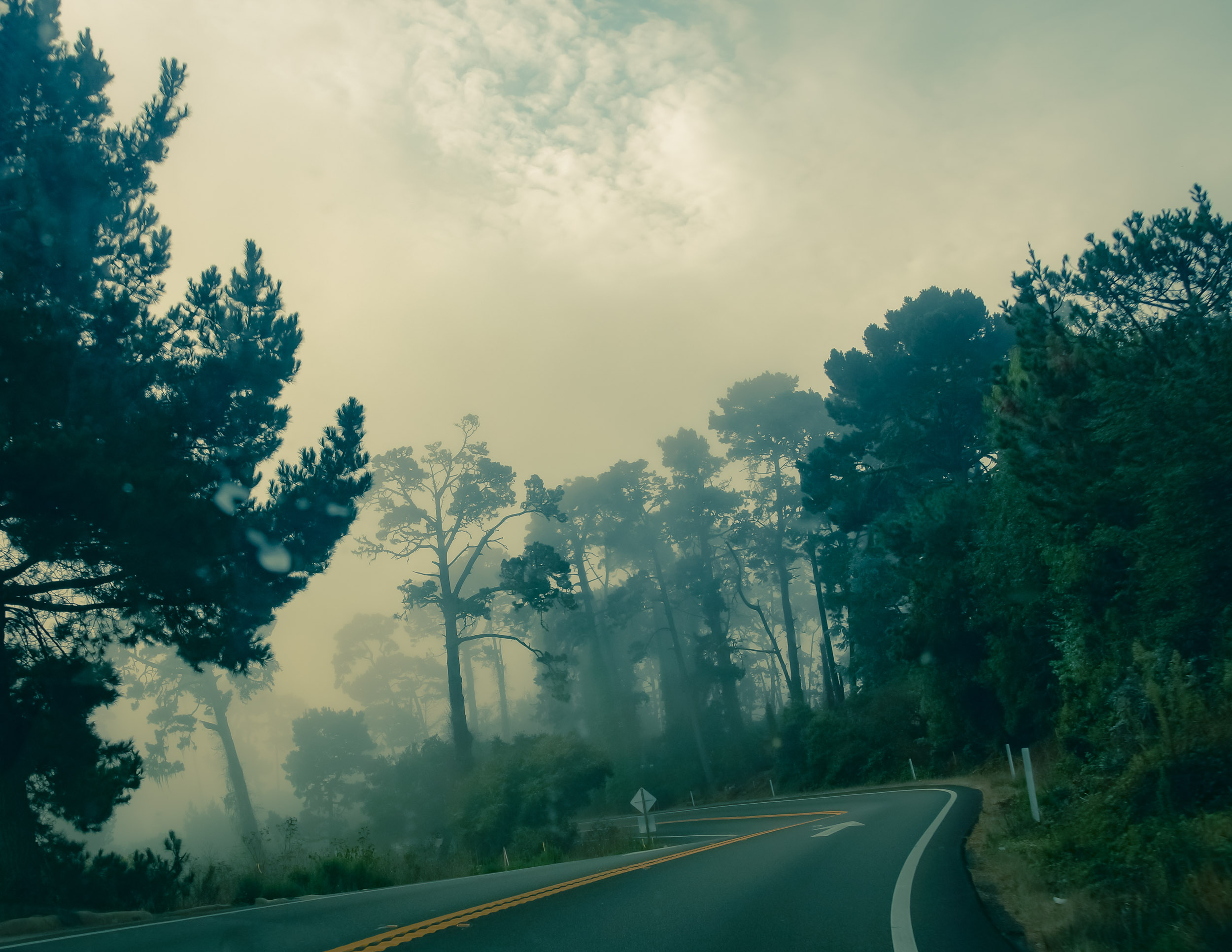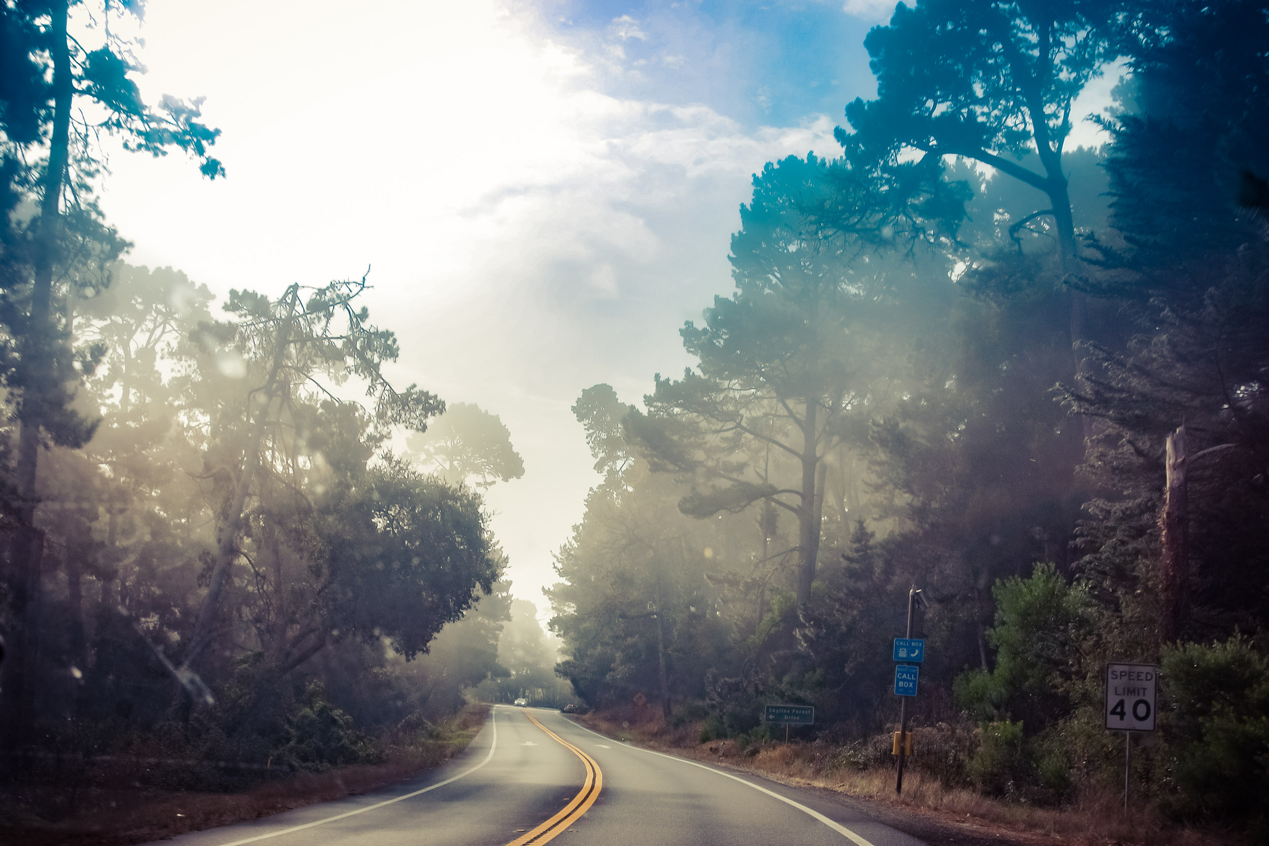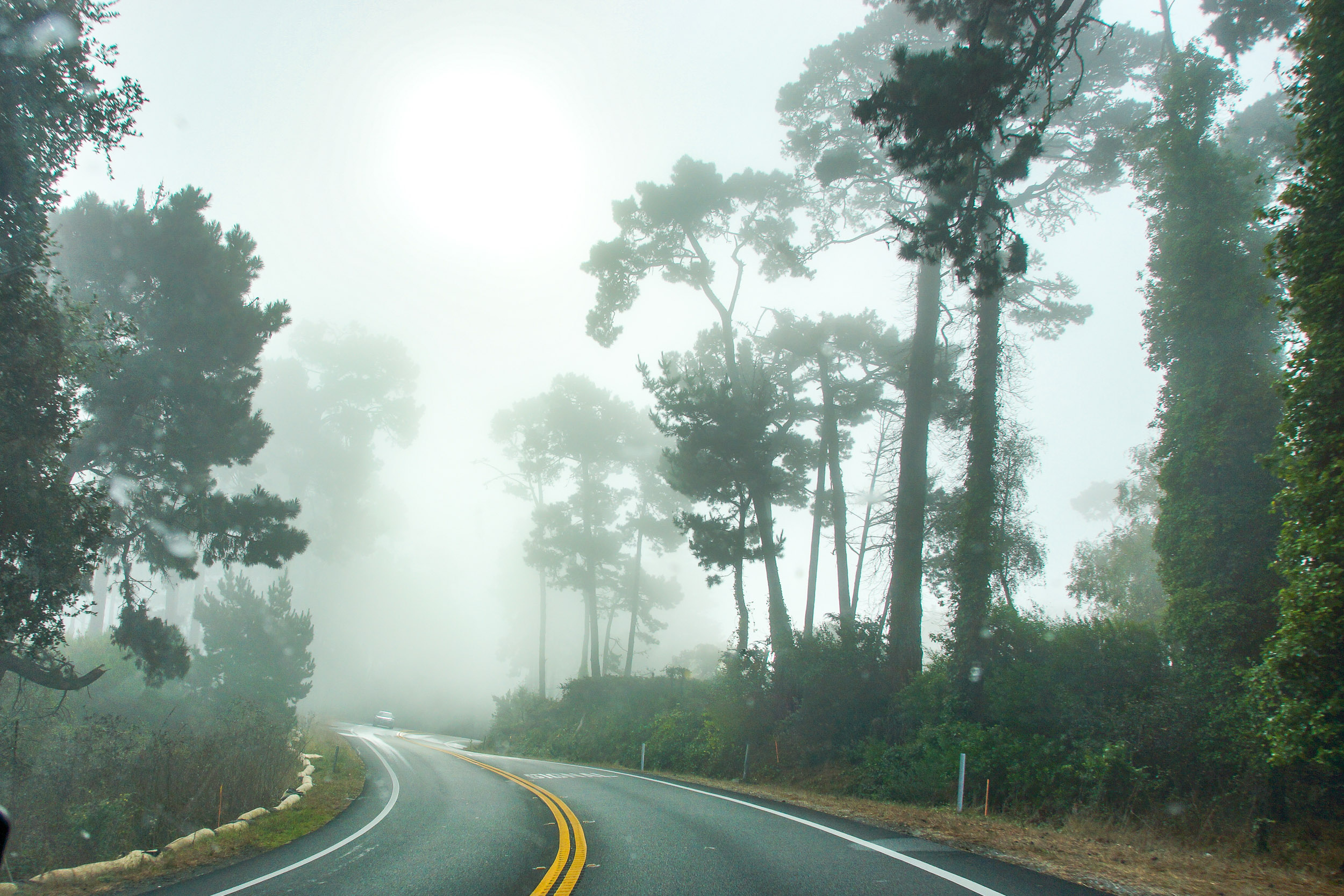 The morning mist was lovely, we slept so late that we never caught it at our destination, it would have given me few great shots, instead I caught them in the car. As quickly as the mist came it also passed. So here are few misty road shots near Carmel by Sea. I had fun with editing 🙂 the last picture is just as the camera caught it.
