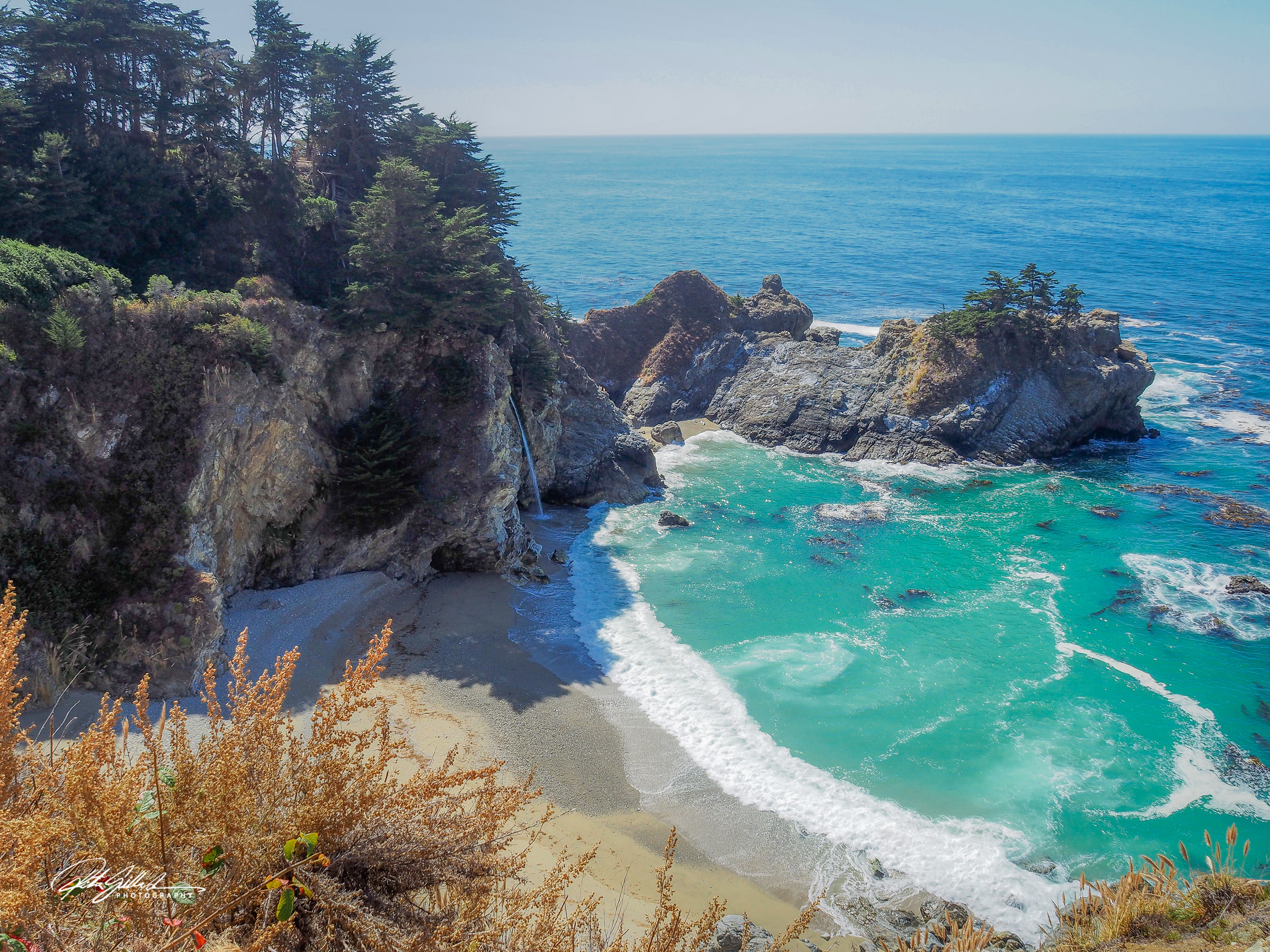 McWay Falls( 80-foot-tall (24 m) waterfall) is “that” waterfall in Big Sur that everyone has seen and many have photographed. That now includes me. The Cliff areas beyond the fenced boundaries, including the beach, saddle rock and the falls area are completely off limits. So the end of the trail was where you could take the photos. Our time of visit was not the best as the light was rather harsh, but we did not have the opportunity and time to pick the time of the visit.