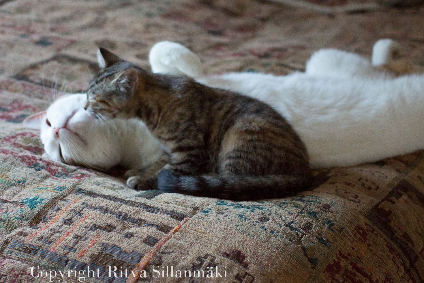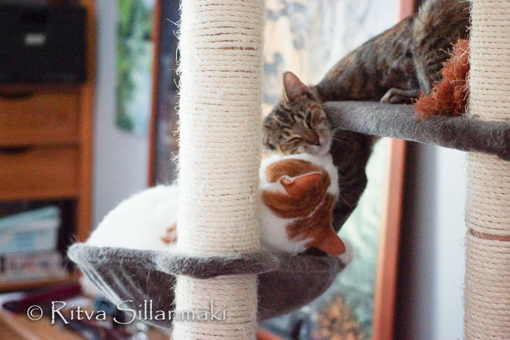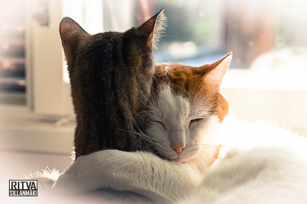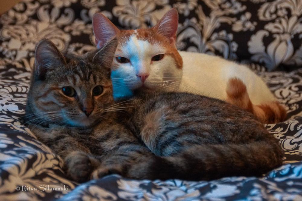 I have two cats – Sisko and Veikka ( Sis and Bro) Here are few of my favorite shots of them. They were and are, so soft and cuddly. Obviously they care for each other