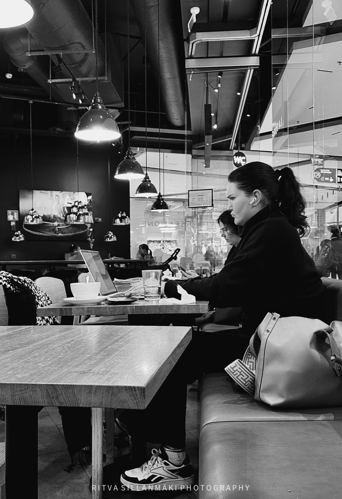 I popped over to get my flu shot and, after a little shopping spree, I thought I’d grab a late lunch at this cozy café/bistro I liked. As I glanced around, I noticed a bunch of folks glued to their computers, phones, or notebooks—definitely seemed like a solid spot for remote work, yet it was super quiet. There were also two new moms with their babies in strollers chatting about the ups and downs of baby life, sharing tips on calming cranky infants and going on about their sleepless nights. Then there was this guy sitting solo with a bag of groceries and a cup of coffee, wearing huge dark sunglasses indoors, which struck me as kinda weird. I couldn’t help but wonder what the deal was with his choice of shades. Just a little quirky, considering we were in a mall on a gloomy, rainy day. So, I dug into my salad while watching the mix of people around me, all caught up in their own little worlds, creating a vibrant tapestry of life right then and there.