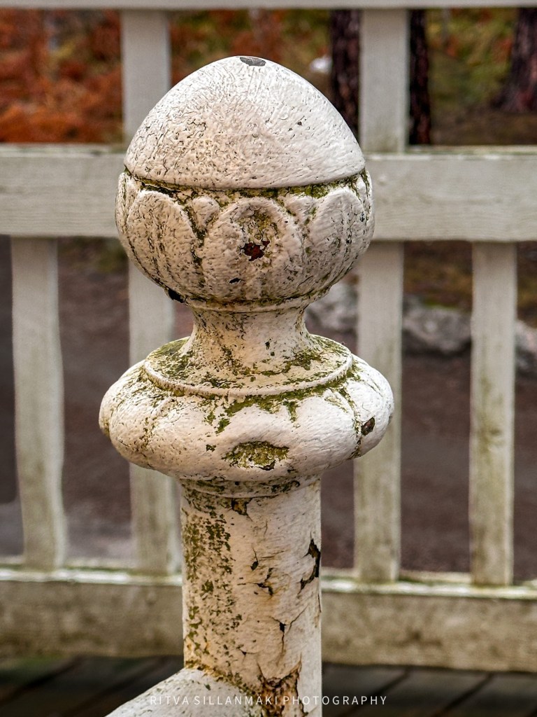 A weathered round post shows intricate details, perfect for the theme of ’round’ in November’s photography challenge.