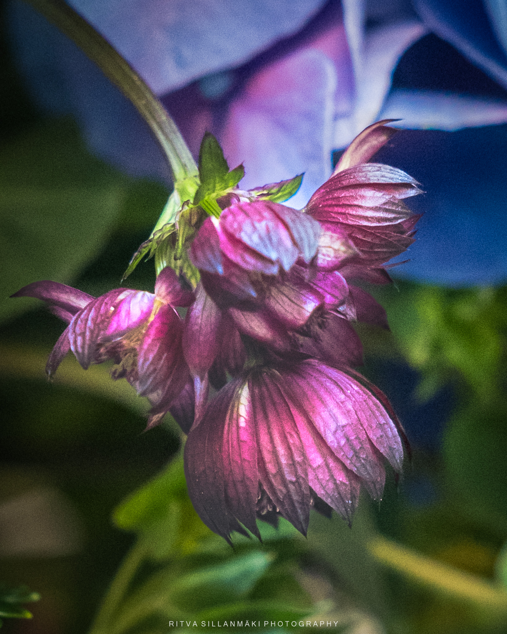 Mood Board – featuring blue and red tones for interior design. I’m beginning with the vibrant shades of blue hydrangea paired with a bold red flower, which will be the centerpiece of this color scheme. A whimsical pink gladiolus adds a playful touch, while a purple great masterwort contributes depth and personality to the overall look. To ground the design, lush greens and muted greens will be integrated through decor or accents, offering a natural essence that tempers the vivid colors. This blend of floral inspiration and striking hues cultivates a magical atmosphere, ideal for transforming any space into a chic and welcoming environment. However, which rooms would suit this palette? In the Nordics/Scandinavia, we tend to lean towards natural and subdued whites and beiges. Yet, I have witnessed beautiful vibrant designs in Britain. I’m curious why this contrast exists. One reason could be that during the dark winter months, a lighter interior provides the brightness we crave, while colors create a cozy nook for us to retreat into. Do you have any ideas?