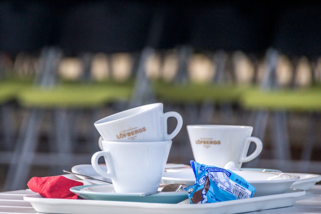 A testament to a moment spent with friends or family enjoying a cup of coffee and an ice cream. Dishes left to be cleared away…not having to do them yourself. Small joys of life.