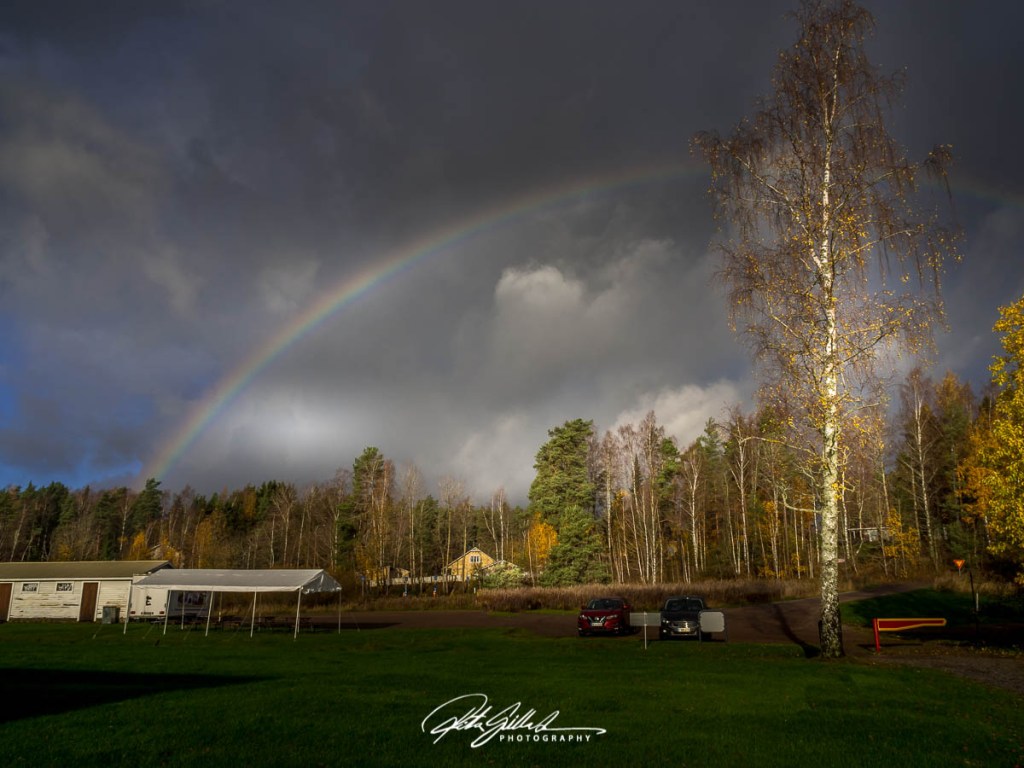 Well anyways I got out of the house and we even got few moments of sunshine today and it was warm at this time of the year 14C. I took the car and went for a drive. My first stop was at lake Syväjärvi as I noticed a nice rainbow. What I saw on the front of the rainbow you can see in the next post, stay tuned 🙂