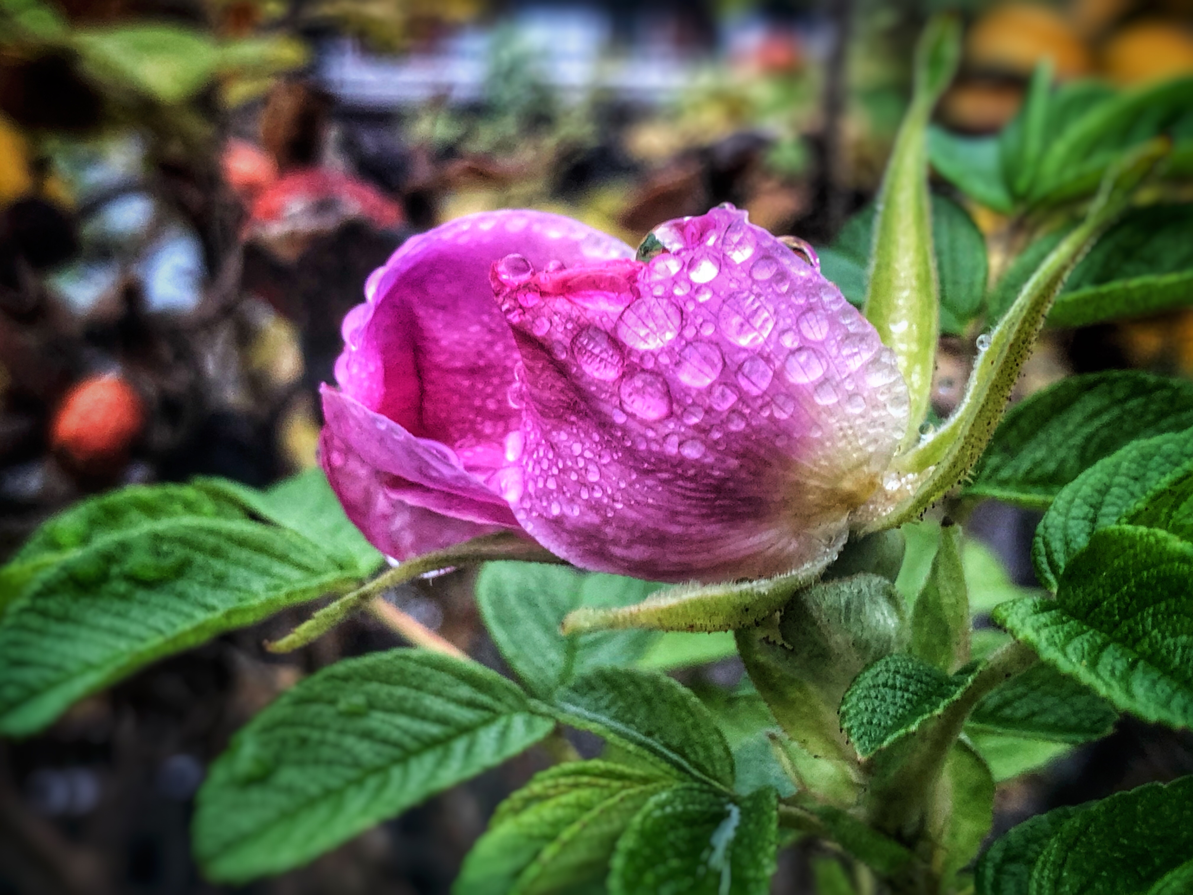 Yesterday I jumped a day, today I went for moment of relaxation- a massage for my tense shoulders. On the way I spotted a one rose and rose hip.