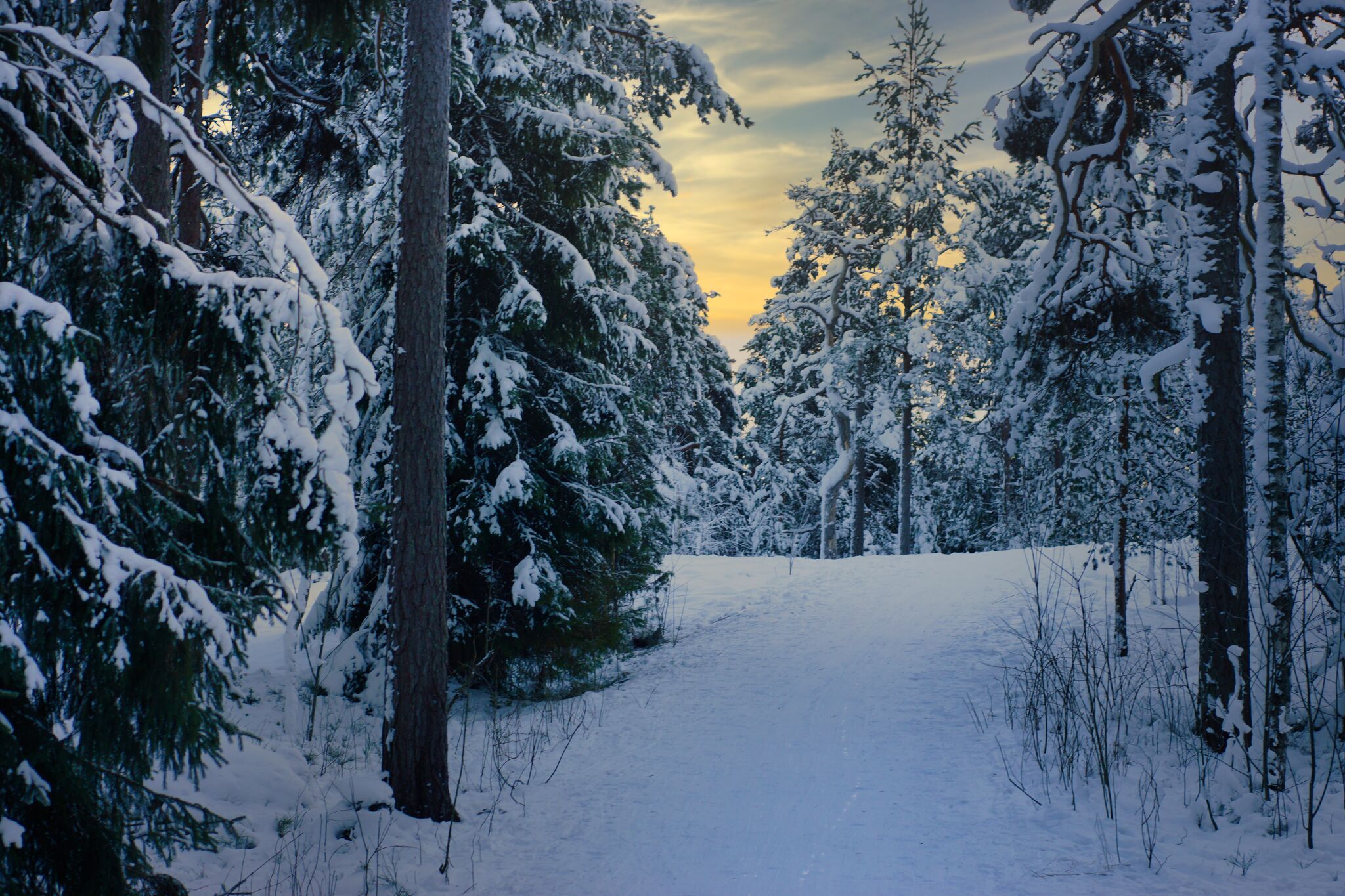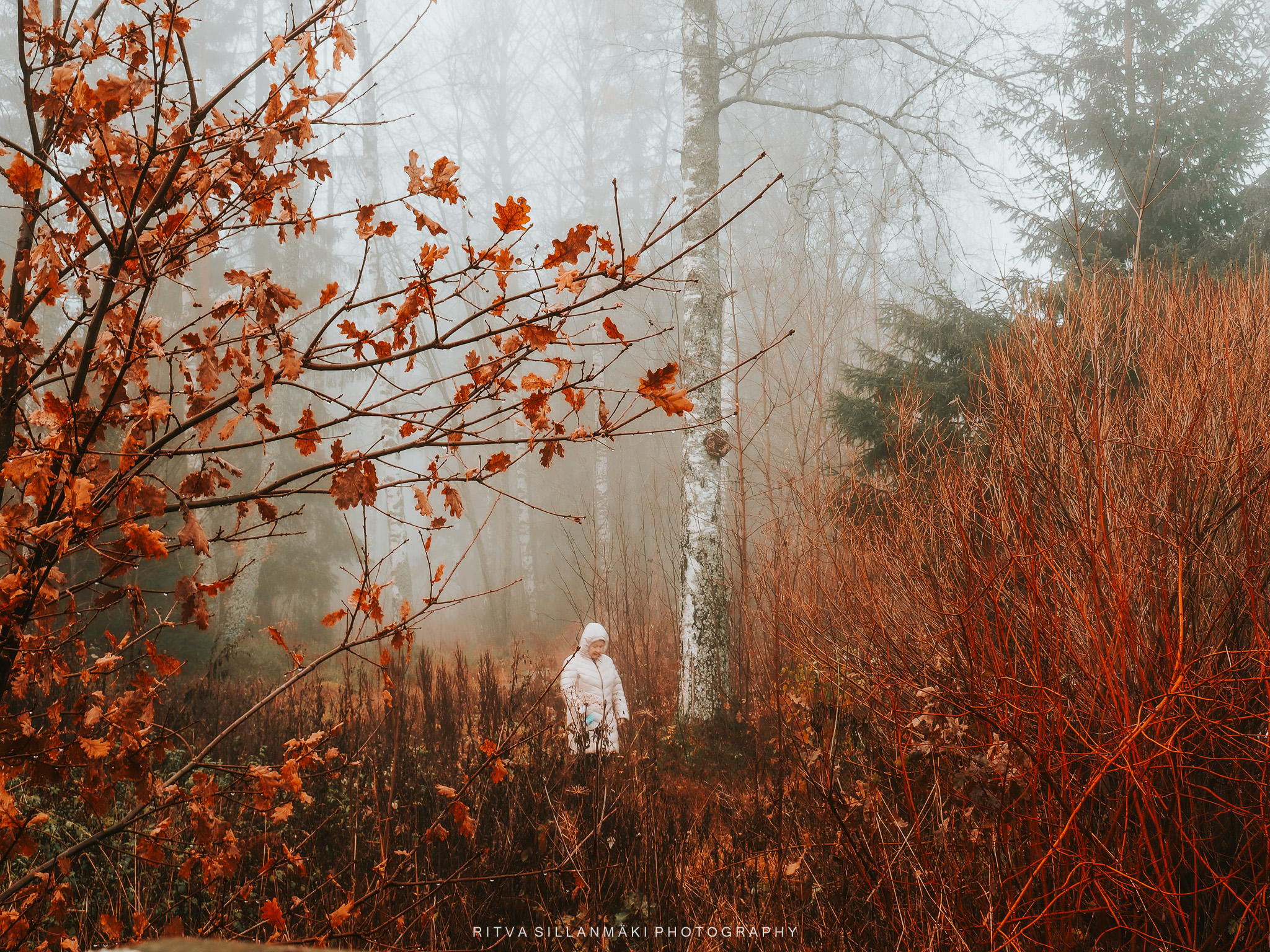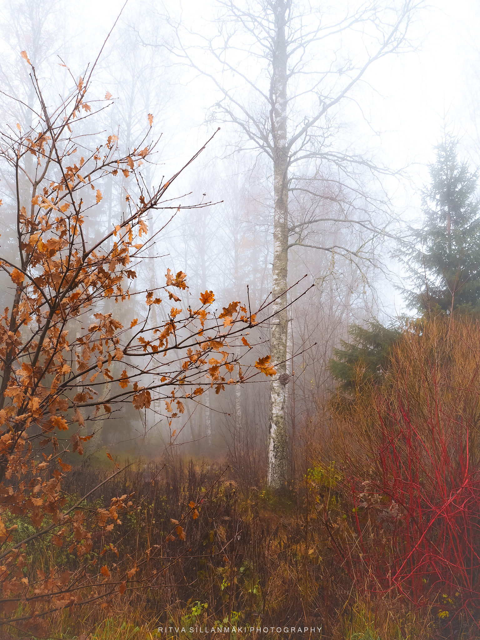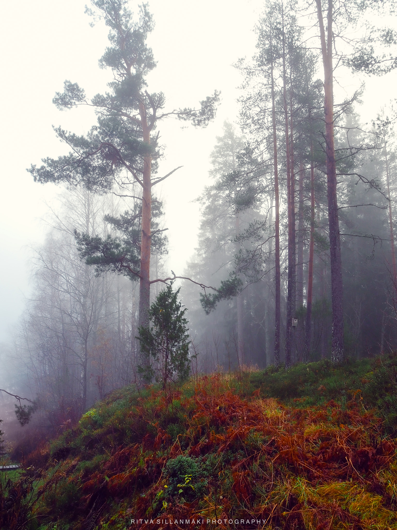 A misty forest scene and the beauty of our wooded landscape. This shot I took from my backyardThe birch trees, the inviting essence of a Finnish forest. The tall, slender trunks of spruce trees amid lush undergrowth amd fallen branches The natural beauty of the forest in KirkkonummiA black and white view of a forest path surrounded by tall trees, showcasing the beauty of woods