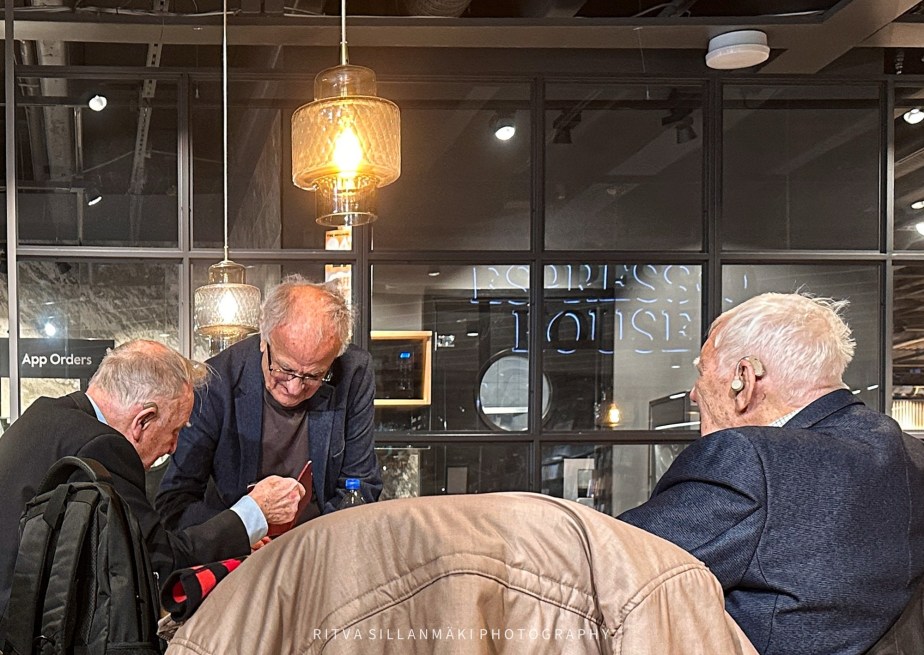 I went to have coffee and saw these three old men having a chat and looking at a mobile phone most of the time while they spoke. It struck me as fascinating how technology has permeated the lives of all generations, not just the youth. As I sat there, observing the exchange of smiles between them, I couldn’t help but think that these seasoned gentlemen, who have seen so much in their lifetimes, were equally mesmerized by the small screen in their hands. This made me reconsider my earlier thought that only young people are suffering from this type of behavior. In reality, it seems that the allure of technology transcends age, drawing everyone into its captivating world, regardless of the sage wisdom that comes with age.