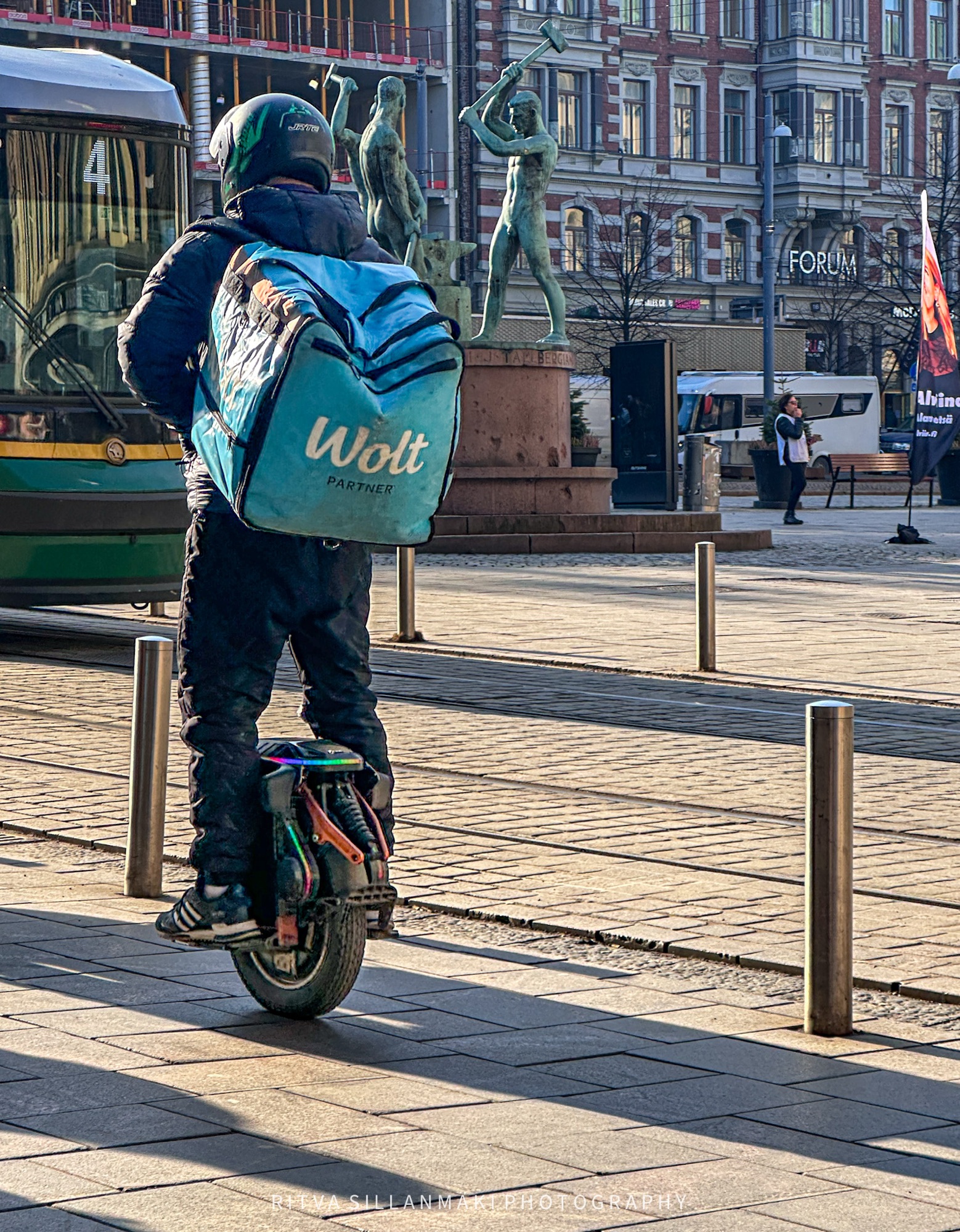 The afternoon was warm, and as I stood in front of the Tallberg building waiting to be picked up, I couldn’t help but appreciate the charm of the surroundings. I so prefer the old building to the new ones that seem to dominate the skyline; the history and character in its architecture resonate with me. A family with colorful jackets passed by, brightening my day after I had seen so many dark overcoats, including mine, that felt heavy and somber against the vibrant backdrop of the afternoon. The many ways the food deliveries are getting delivered is amazing; I observed a new method today …