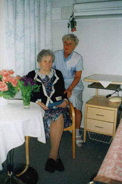 The photos, first my Grandmother at the age of 90 in her nursing home, me and her. the last one is of her with my grandfather.