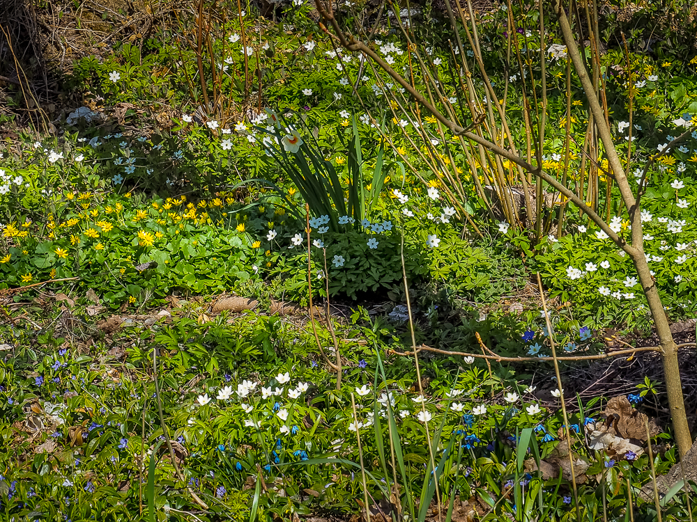 the weather has sent us backwards, the lovely spring days are gone and we are back to less nice temperatures and cloudy skies with rain, slush and winds. Still the early spring flowers pop up and bring color and joy to the brown tones of spring.