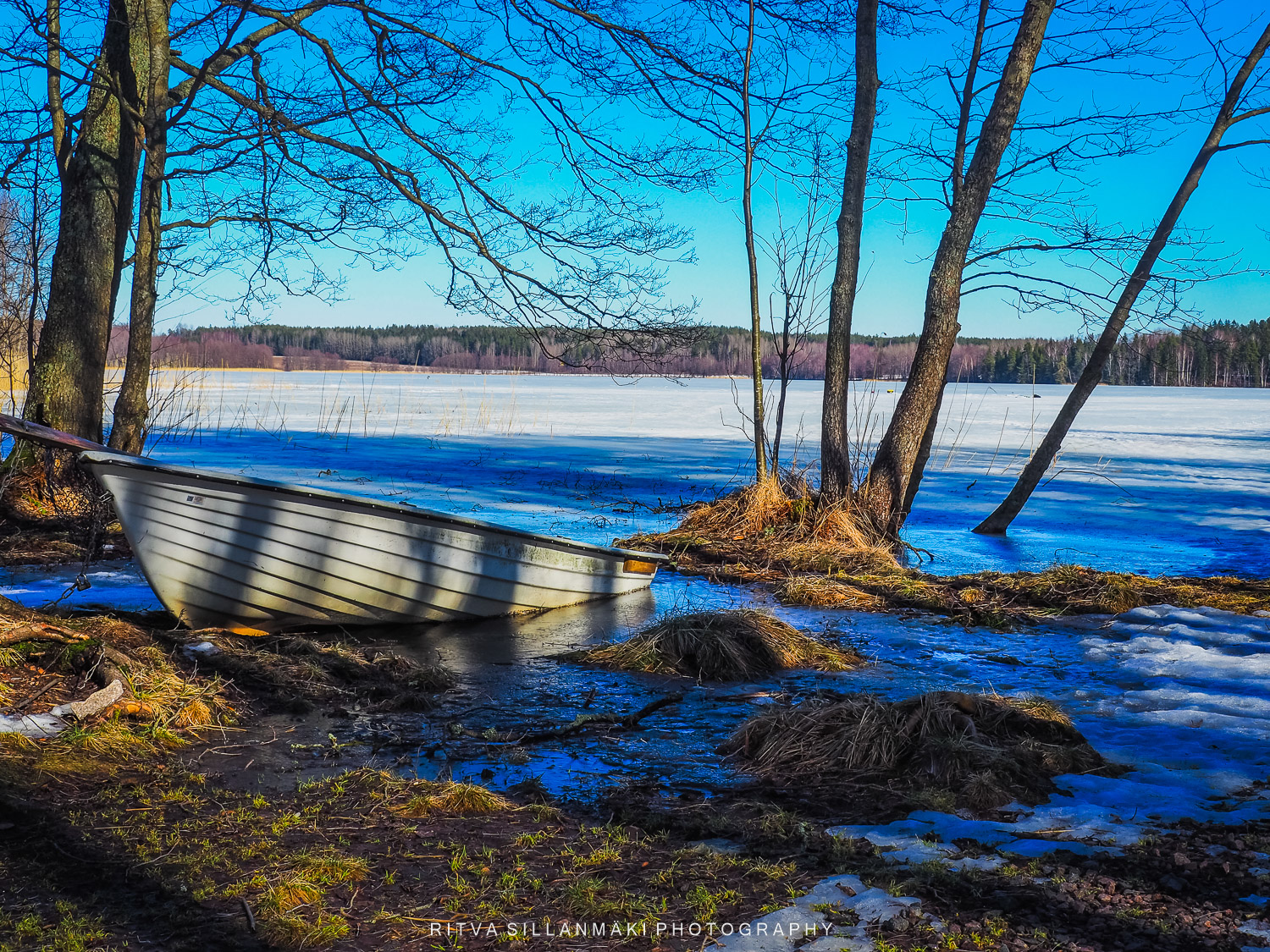 First you notice is the snow and ice melting.The fields with the soil coming visible and mornings of mist. Everything is brown. Only moss glows green. The lakes and sea is been freed from under the ice.