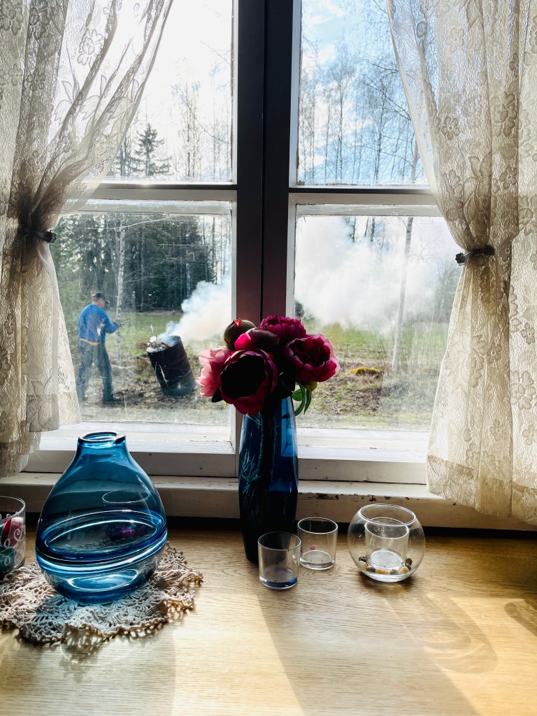 We came to out summerhouse for the first time this year. It is early spring so not much green yet visible, it is time to do spring jobs, take the leaves and burn fallen branches. Clean the house.