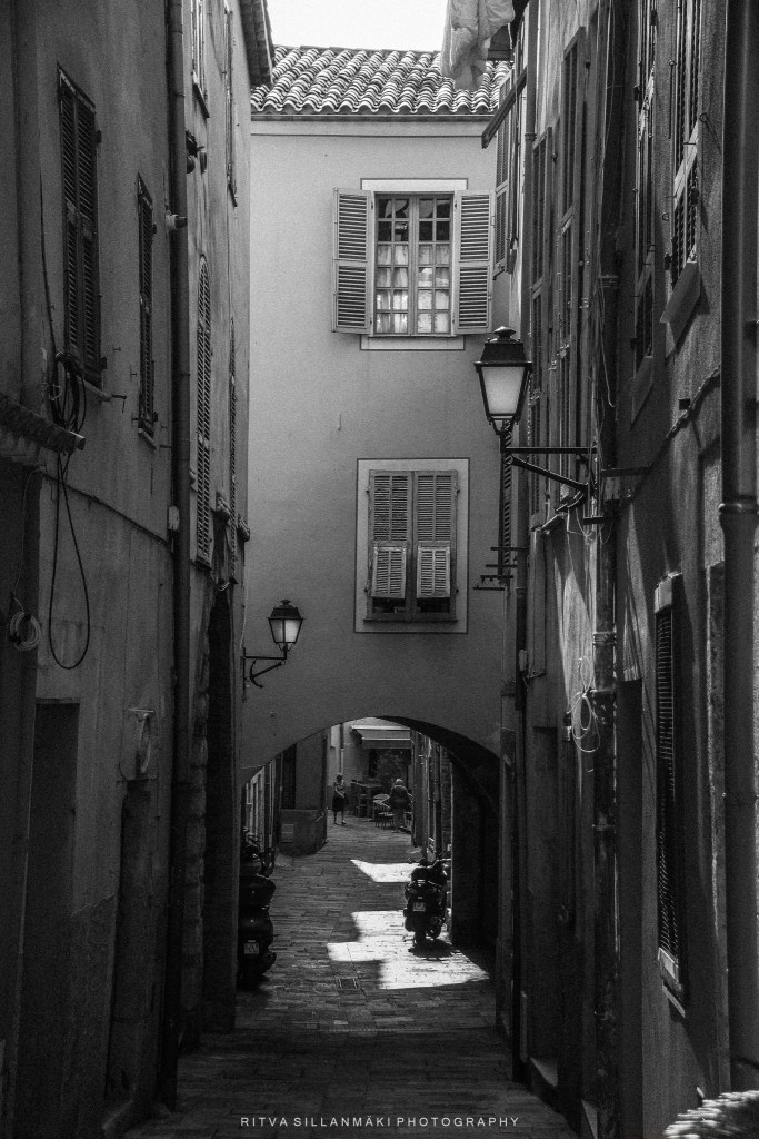 Same place, two strikingly different compositions of this narrow lane, and you find yourself captivated by entirely new aspects. Do you feel the same? The other image irresistibly draws your gaze towards the windows and shutters, despite offering a wealth of intricate details beyond its landscape counterpart. The interplay of light and shadow weaves a dynamic tapestry that elevates the textures of the buildings. Each detail enlightened, allowing us to revel in the artistry of the architecture. Above all, I love the contrast and the play of light here—the very essence of monochrome and black and white photography. It accentuates shapes and forms, urging us to dive deeper into the image, as the absence of color beautifully challenges us to discover elegance in both simplicity and complexity.