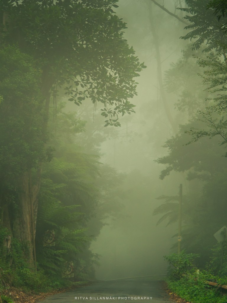 A misty forest scene and the beauty of our wooded landscape. This shot I took from my backyardThe birch trees, the inviting essence of a Finnish forest. The tall, slender trunks of spruce trees amid lush undergrowth amd fallen branches The natural beauty of the forest in KirkkonummiA black and white view of a forest path surrounded by tall trees, showcasing the beauty of woods