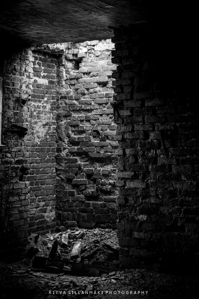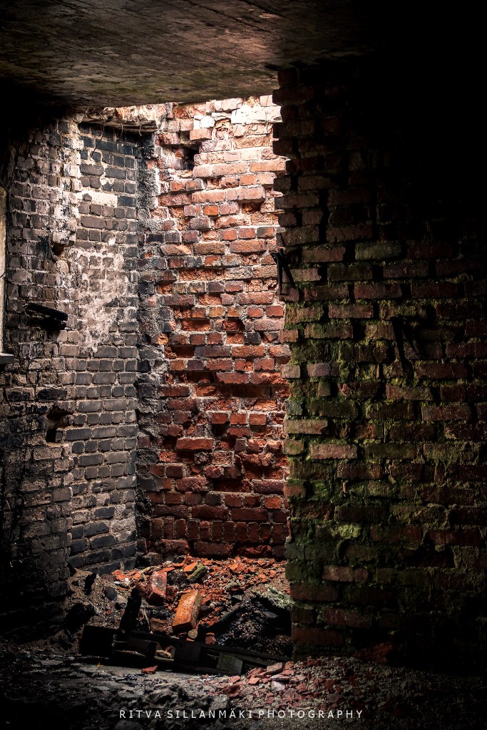 I am starting with doors leading to boathouses and a view through an archway of a partially collapsed brick structure reveal a jagged brick wall in Finland.