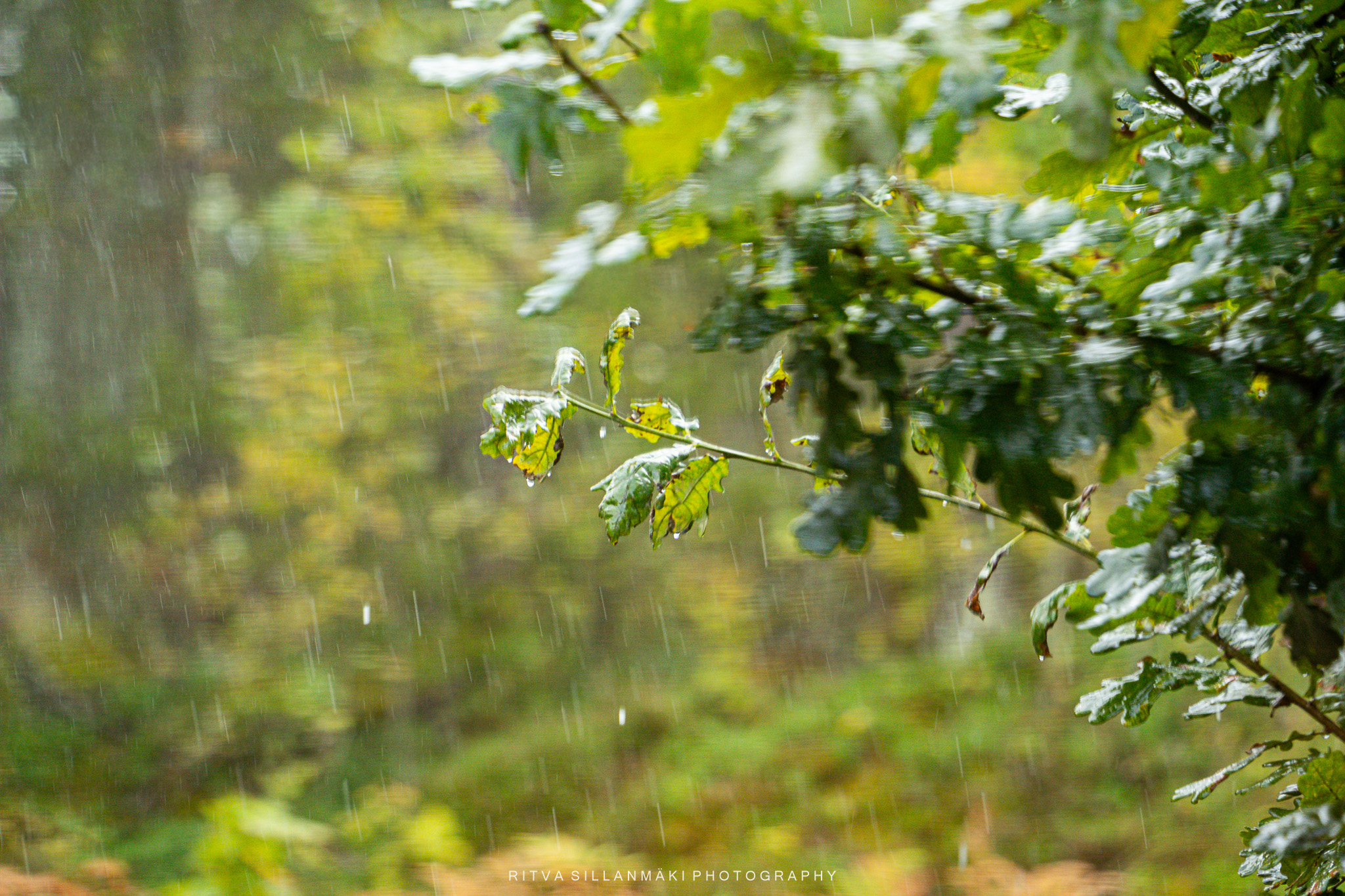 September rain, it came down heavily and slowly and heavily again, drenching the earth in a soothing rhythm that seemed to echo the heartbeat of the world. The wind, both gentle and powerful, swirled through the yard, frolicking amid the vibrant green leaves and twirling branches of the trees that swayed almost rhythmically, while droplets moving fast in the dim light, creating a serene but moody atmosphere. That is the feeling of the day at my house.