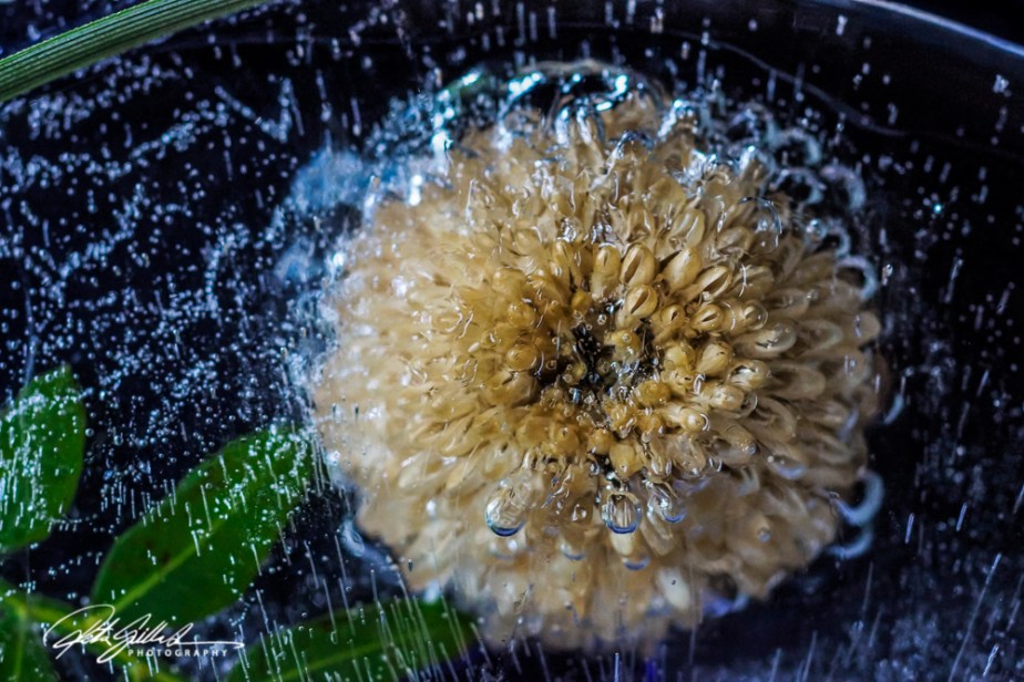 I am creative with the theme ’round’ in today. Picture this: a flower frozen in ice, right at the center of it all! It really highlights how light plays off the ice and the bubbles.
