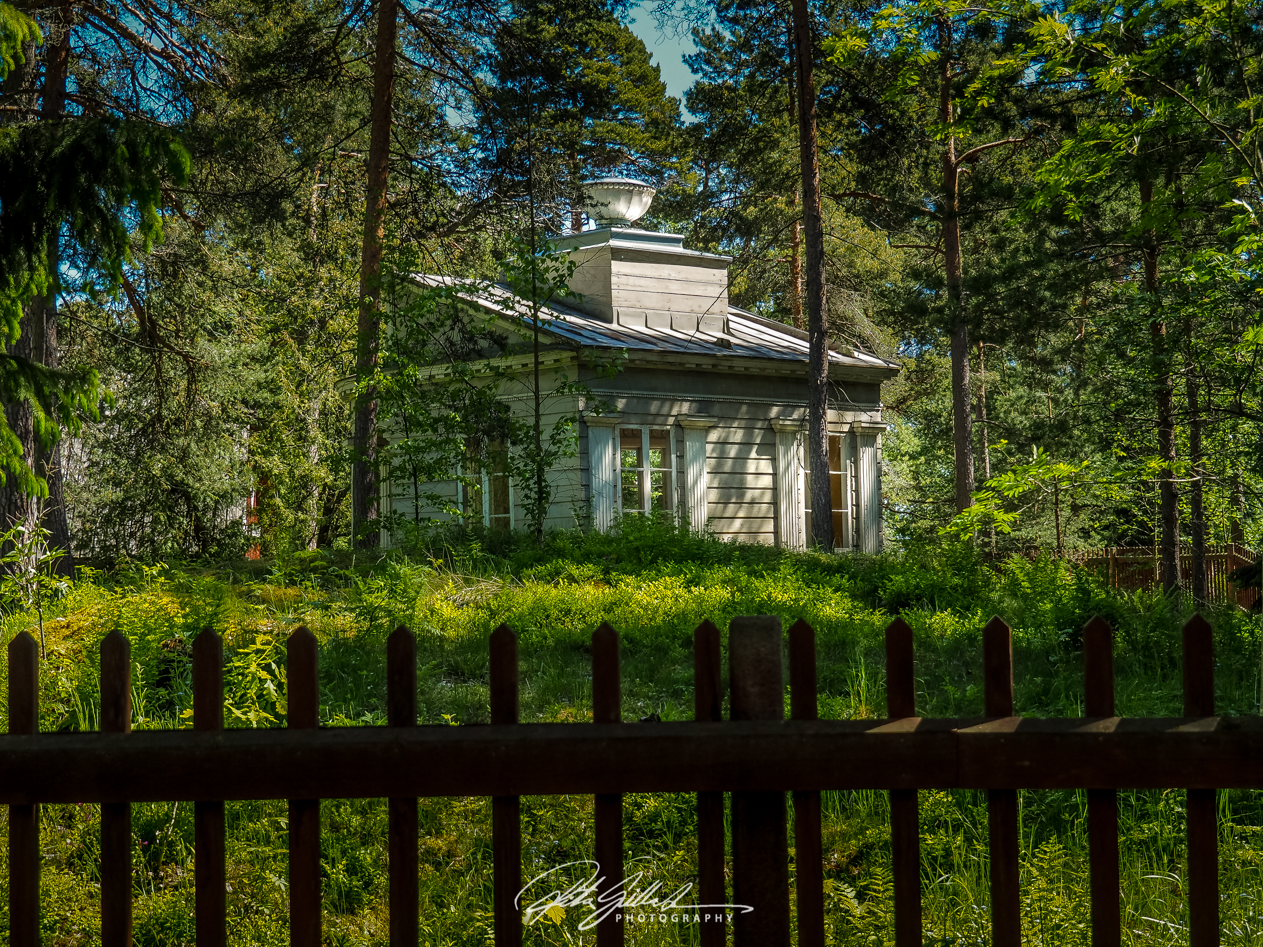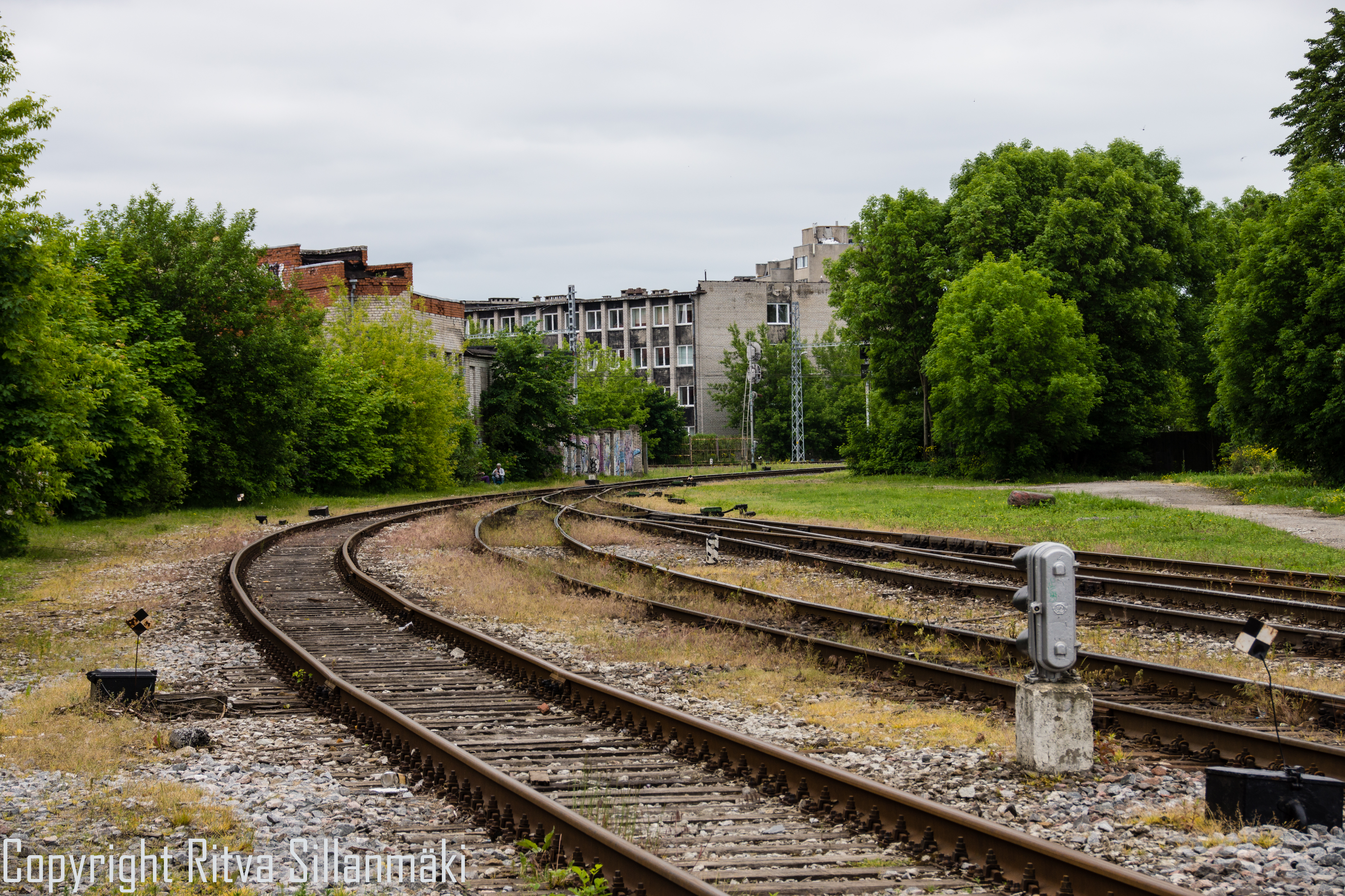There are several white-framed windows along the walls, each with a small ledge below. One of the windows on the upper left side holds potted plants on its ledge, bringing some life to the otherwise deserted scene. Some of the windows suggest that this is not totally abandoned, just a wild guess on my part. I took these photo several year back in Estonia.