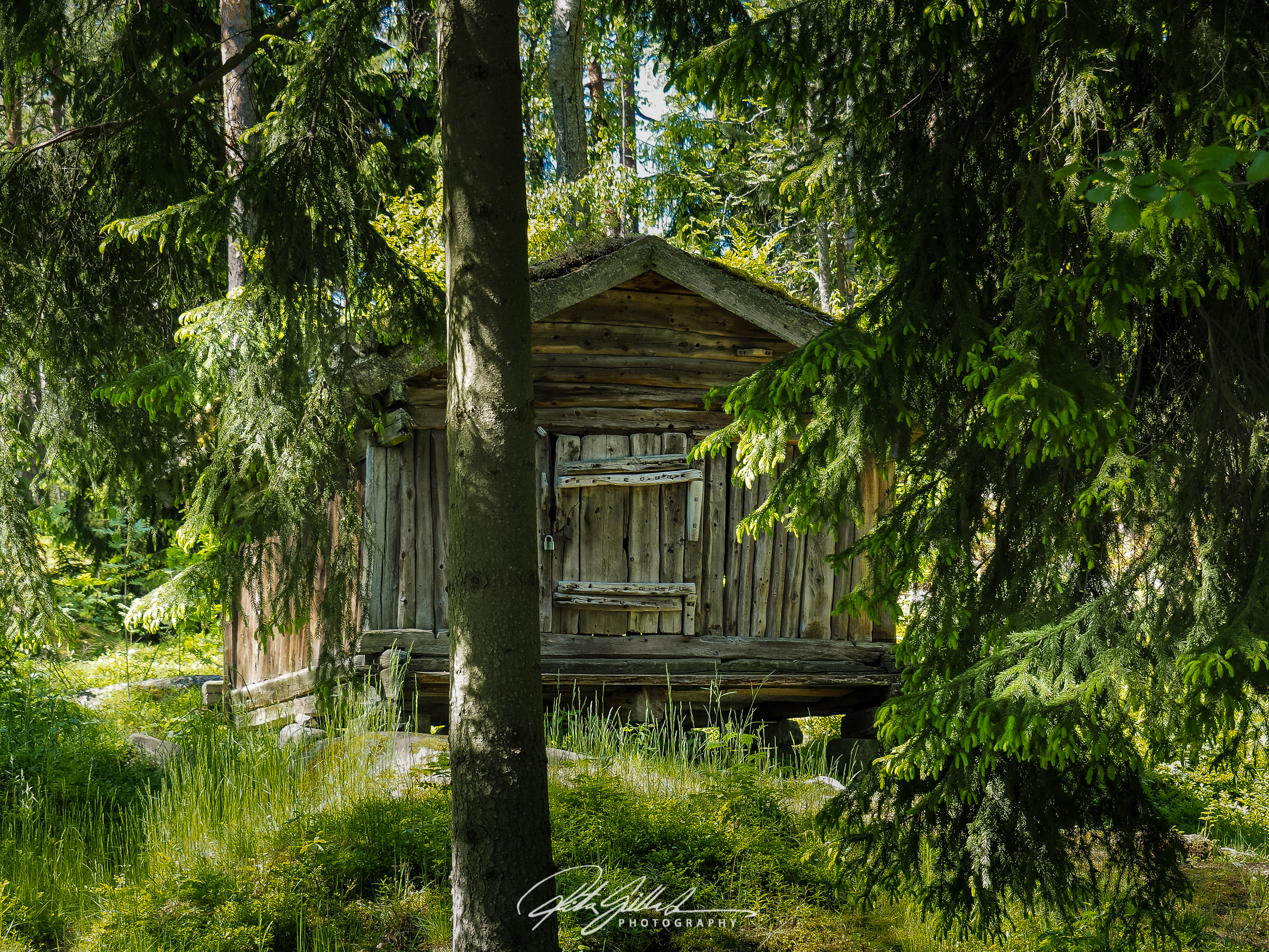 On either side of the door, partially closed white shutters cover windows, hinting at a time when life once thrived within. Nature has begun to reclaim the space: grass grows defiantly, and tree branches reach out, casting shadows. I felt the overall mood was somber yet serene, evoking feelings of nostalgia and the inexorable passage of time.